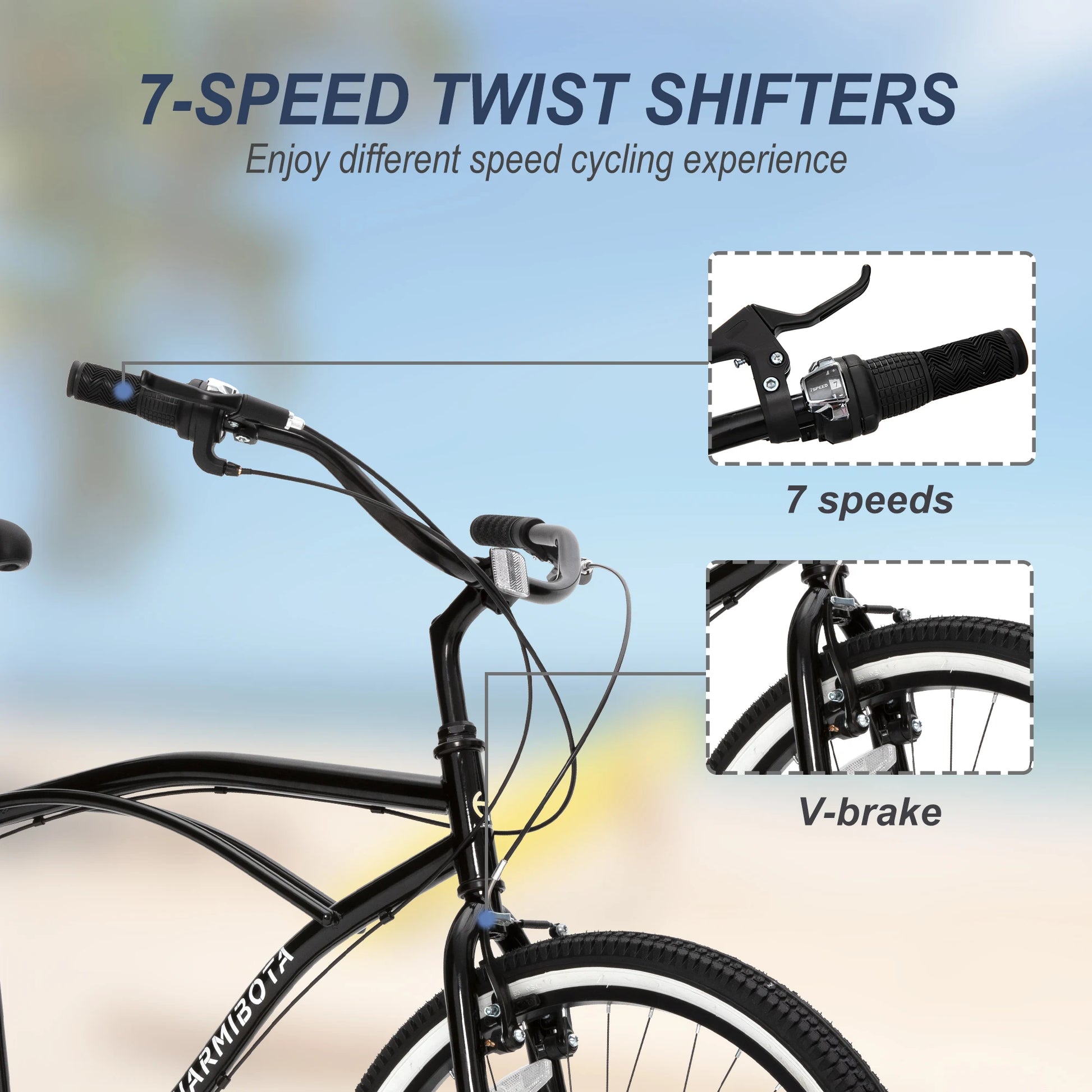 26 inch 7 speed beach bike, steel frame, upright comfortable seat, U-brake, multi-function rear rack, , unisex
