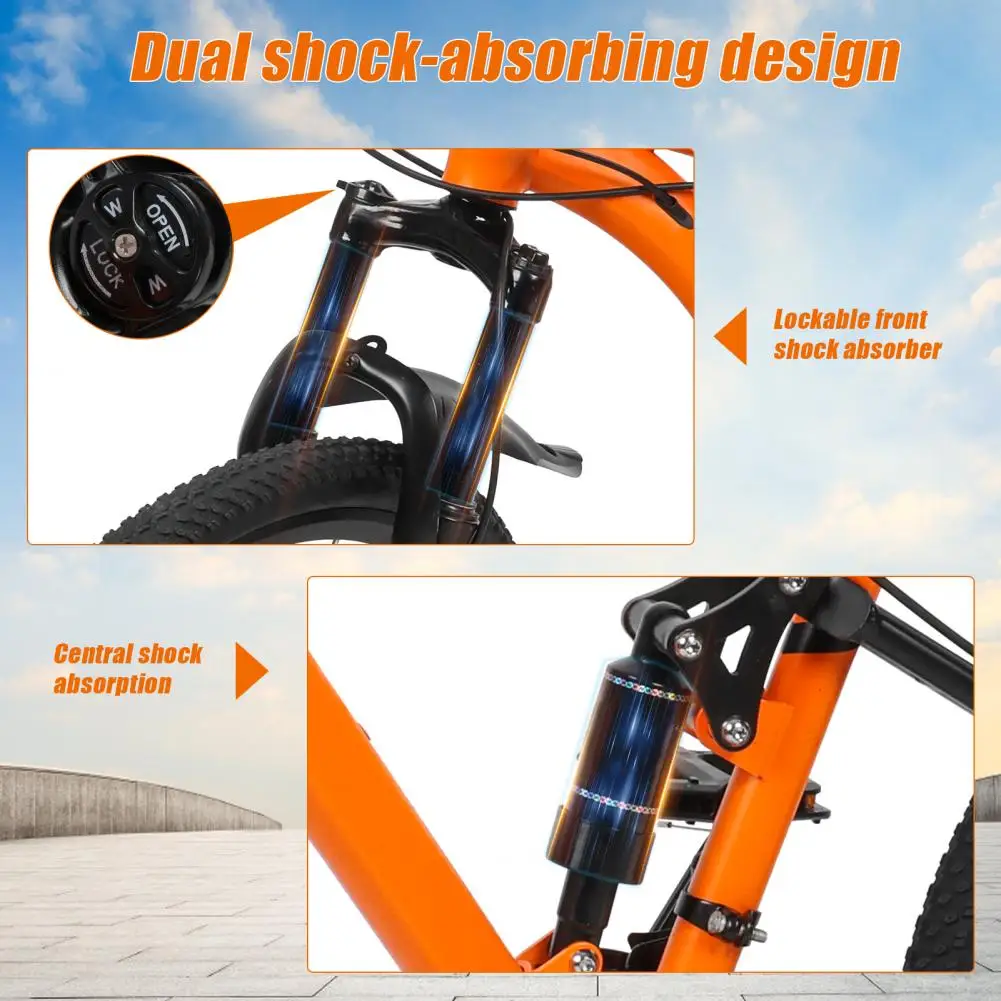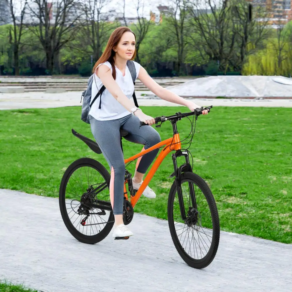 24 Speeds Trigger Shifter: Equipped with a 24-speed system, the adult mountain bike offers a plethora of speed options for a flexible riding experience. Easily adjust gears based on your preference.