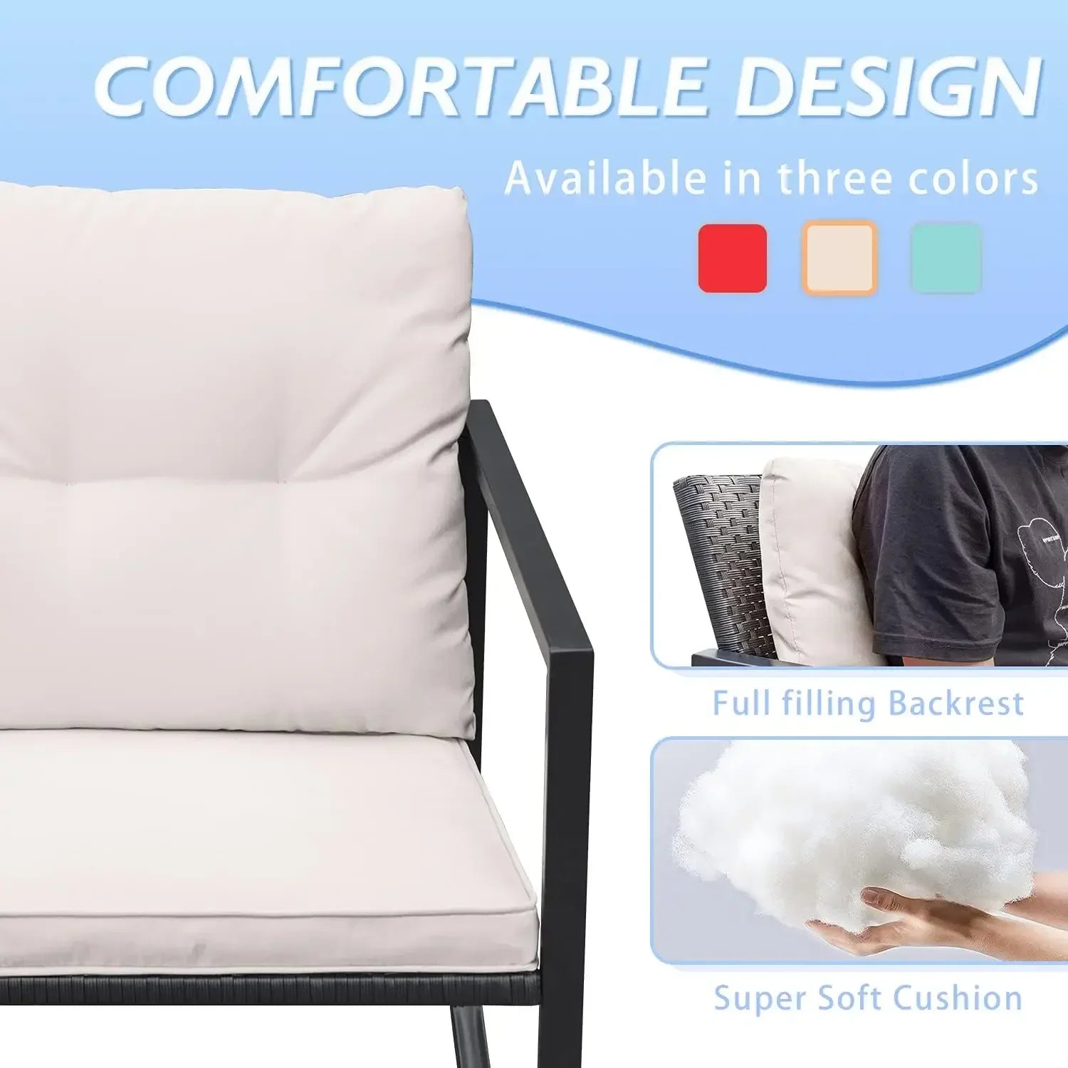 Greesum 3 Pieces Rocking Wicker Bistro Set, Patio Outdoor Furniture Conversation Sets with Porch Chairs and Glass Coffee Table, Beige
