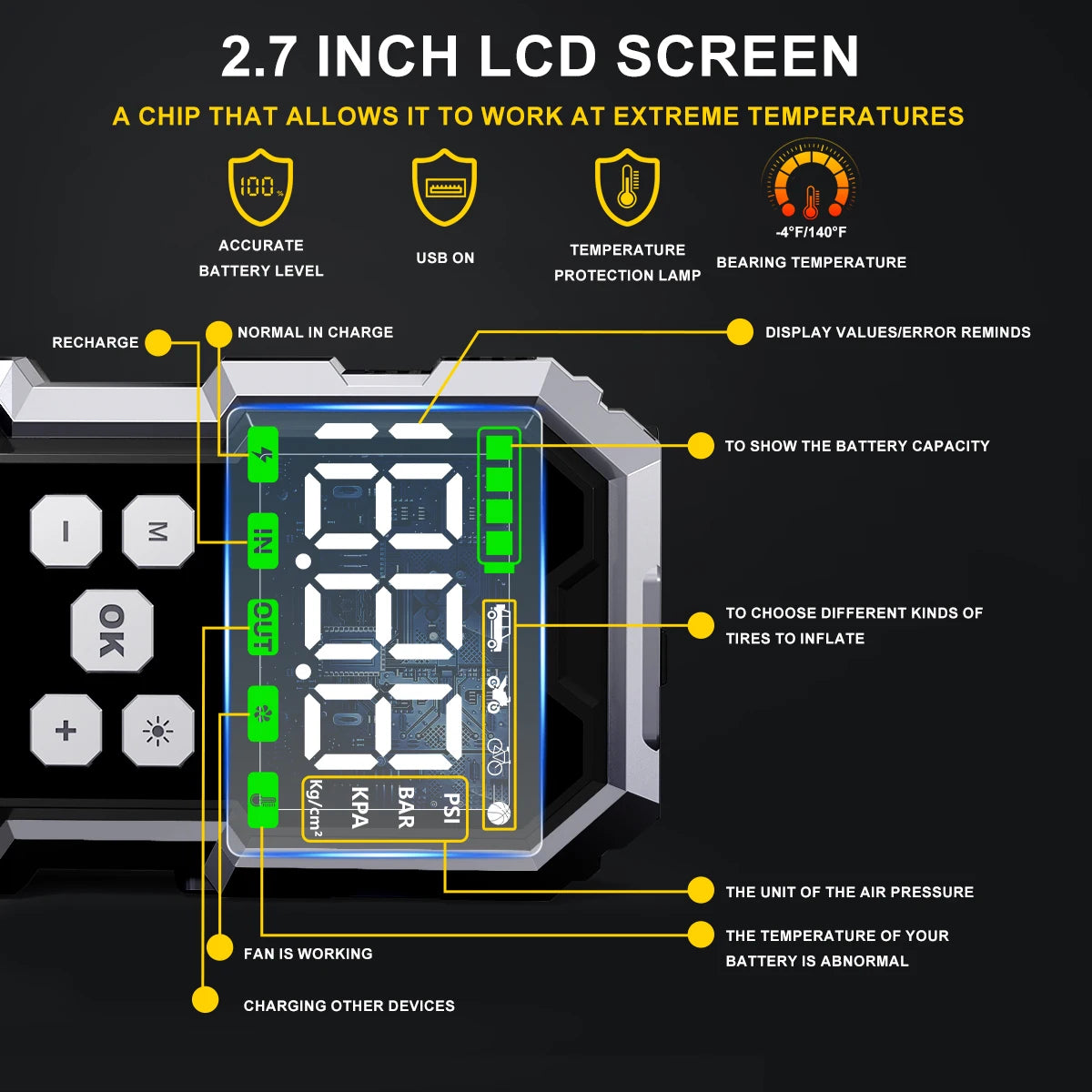 7000A Car Jump Starter and Air Compressor Power Bank with LED Flashlight