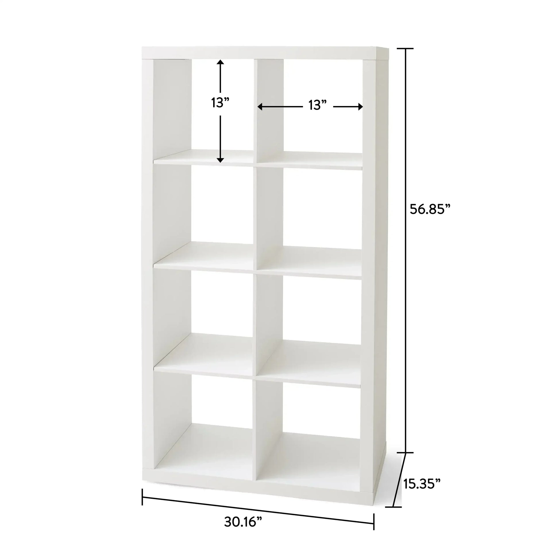Add function and style to your home with the 8-Cube Storage Organizer. Available in multiple finishes, this cube organizer features eight 13" x 15" x 13" compartments, the perfect size to display books, collectibles, photos, artwork, storage bins and baskets. An open back design makes it easy to manage cords and cables. This sturdy bookcase can stand vertically or horizontally to best make use of space. The top panel supports up to 100 lbs when vertical, and 150 lbs when horizontal. Combine it with other Better Homes & Gardens Cube Organizers and Cube Storage Bins (sold separately) to create a complete storage and display system. Easy to assemble with included wall attachment safety system, the Better Homes & Gardens 8-Cube Storage Organizer is perfect for your office, living room, den, playroom and more.