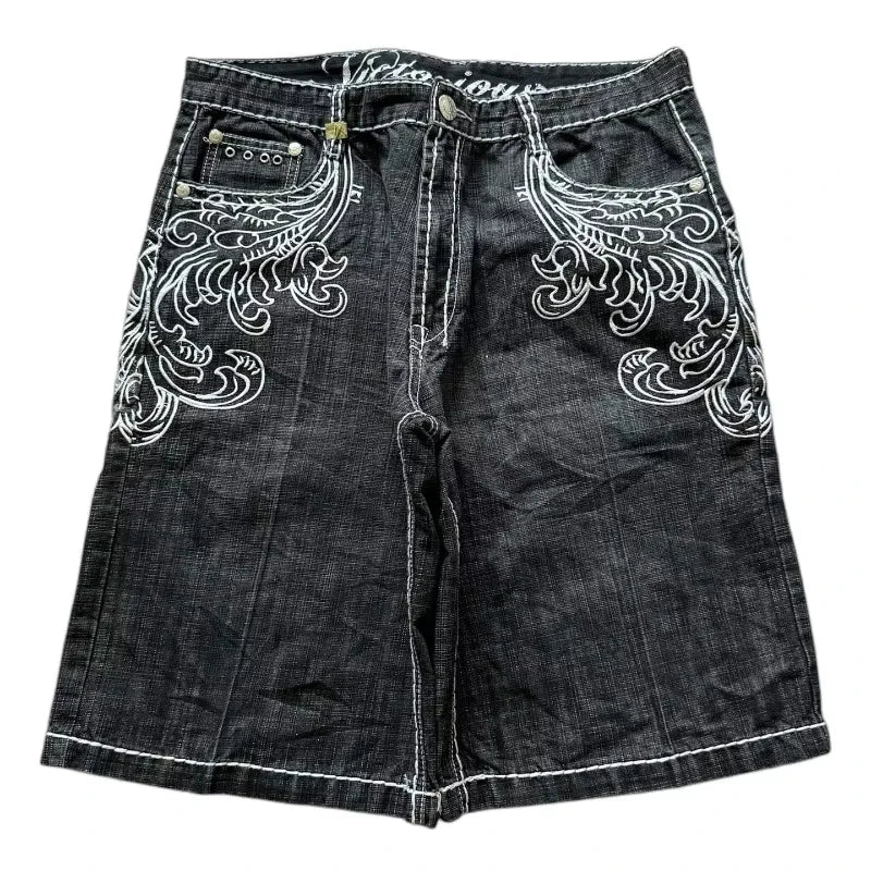 American Vintage Popular New Pattern Embroidery Baggy Denim Shorts Men Street Fashion Gothic Casual Joker Shorts Women Clothing