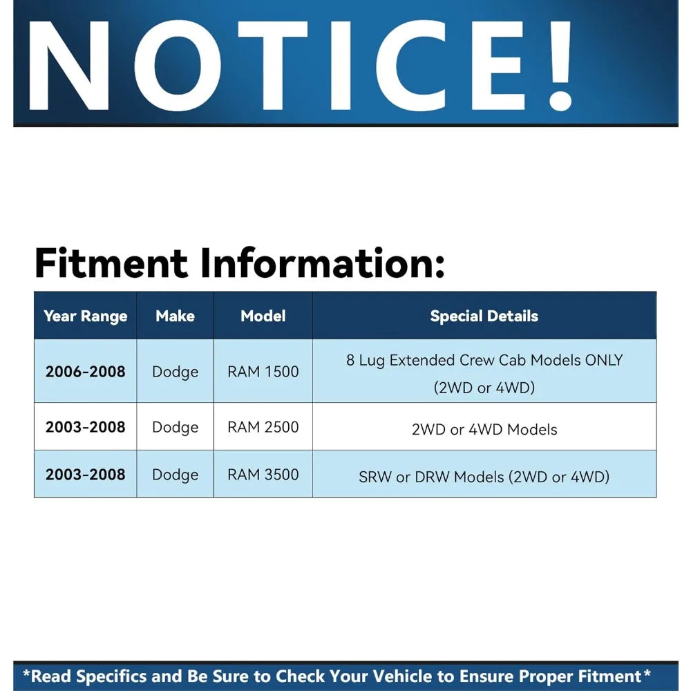 Introducing the Detroit Axle Brake Kit designed specifically for the 2003-2008 Dodge Ram 2500 and 3500 models, featuring high-performance drilled and slotted rotors. This premium brake kit ensures maximum stopping power and enhanced heat dissipation, making it an essential upgrade for any serious truck enthusiast.