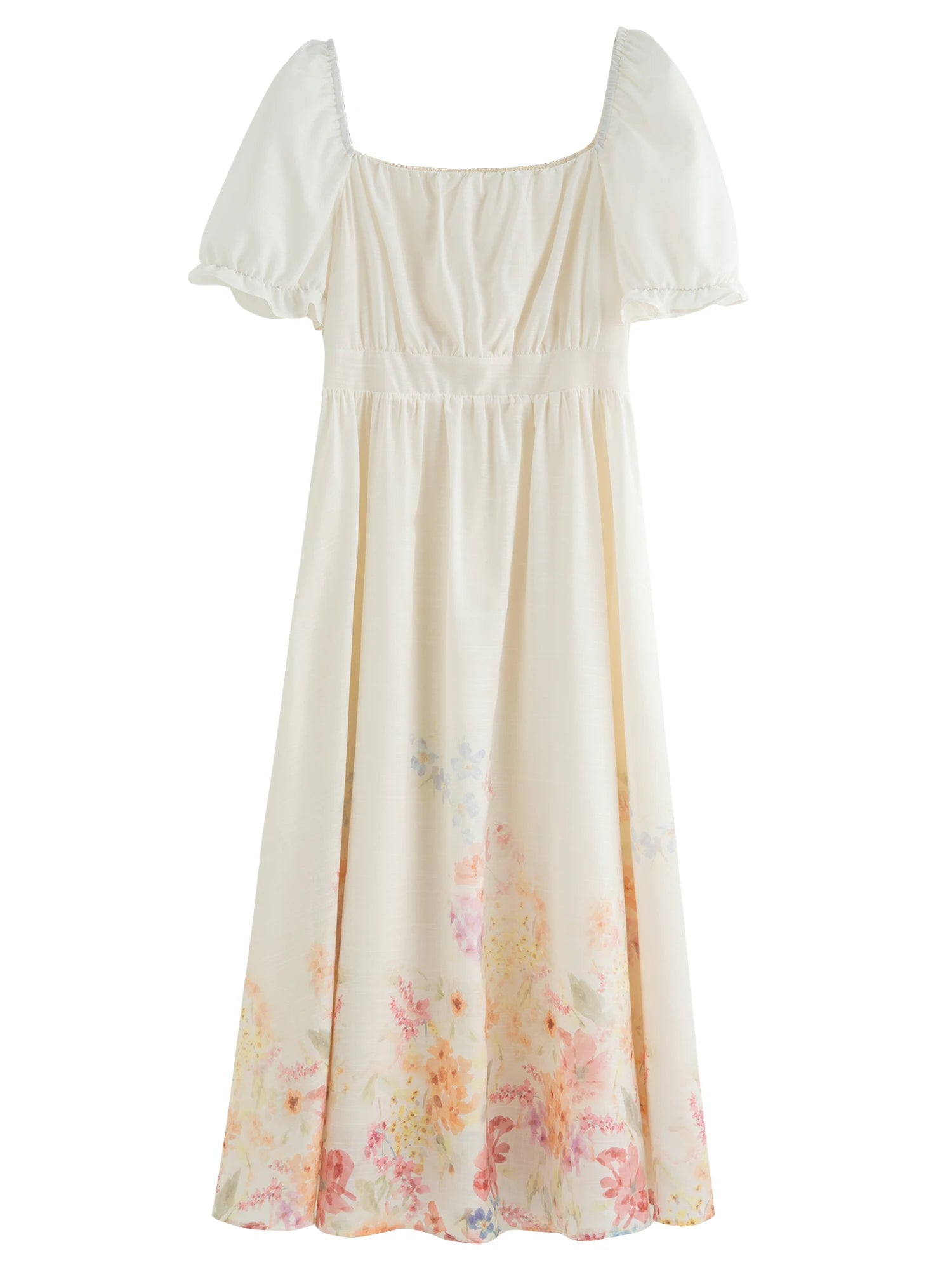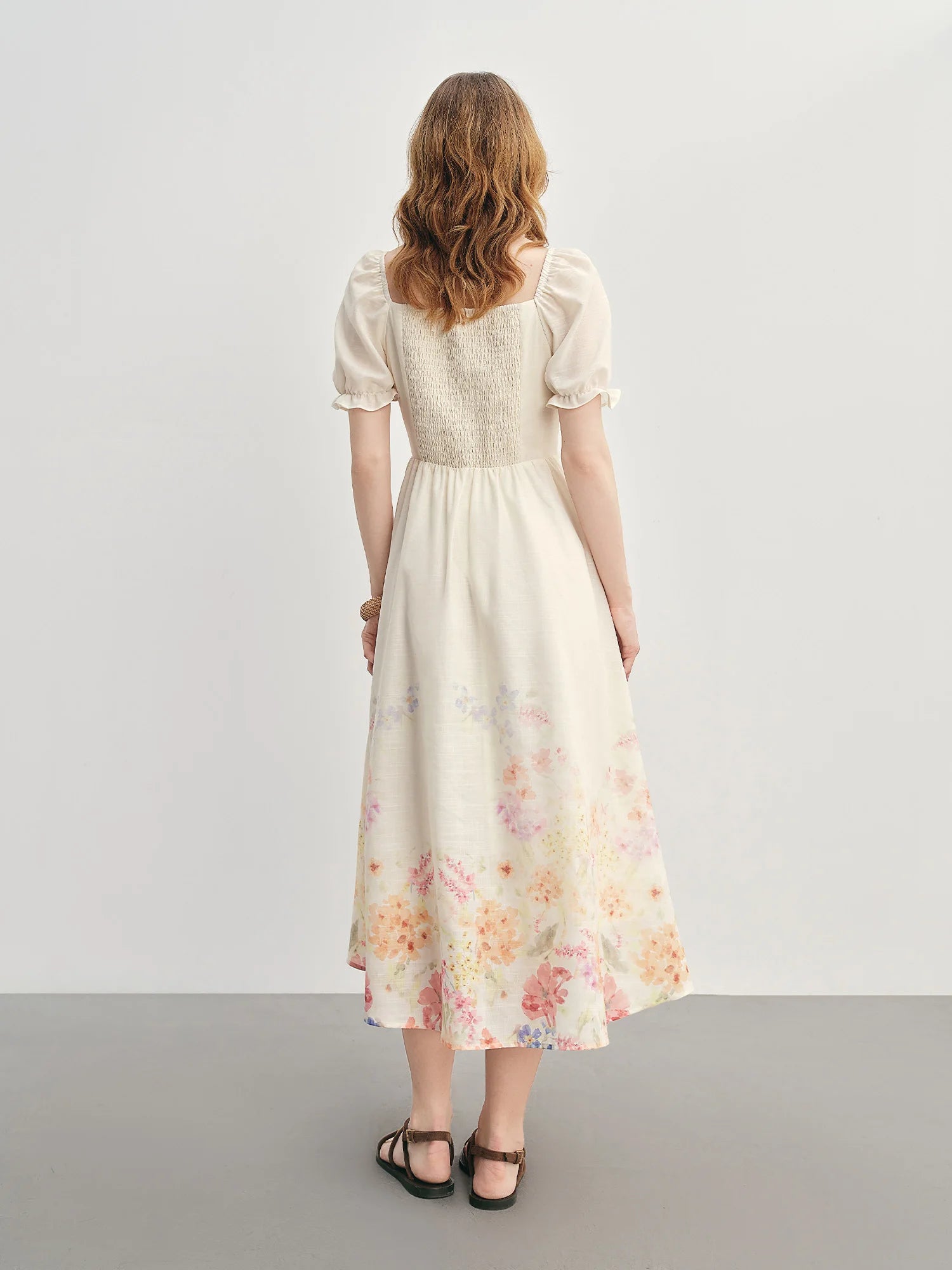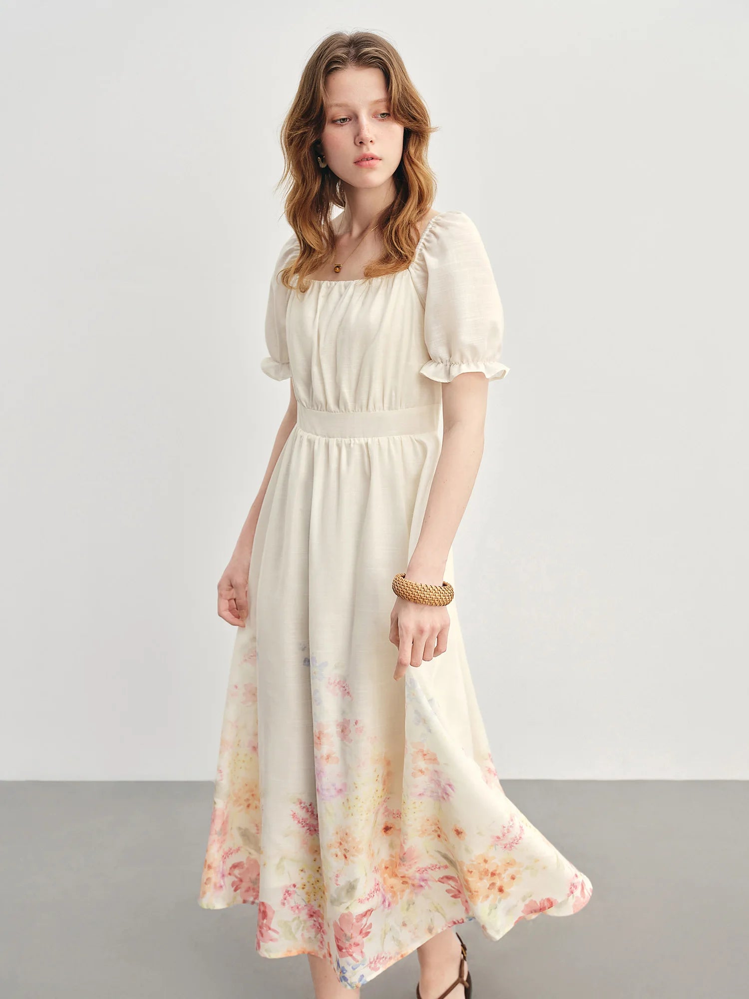 DUSHU Summer 2025 Textured Floral Dress - Regal Bubble Sleeve Fluid Silhouette Resort to Office