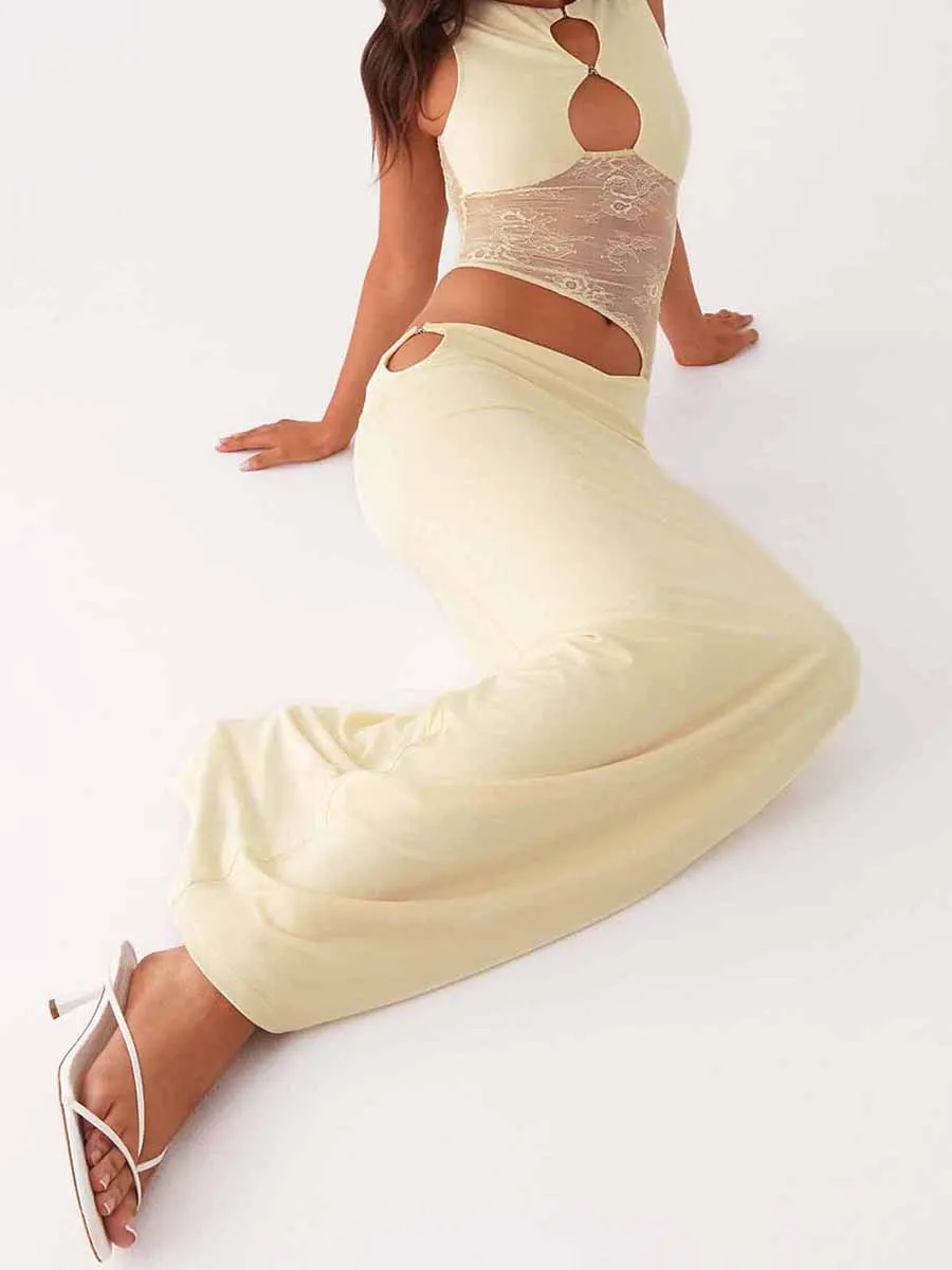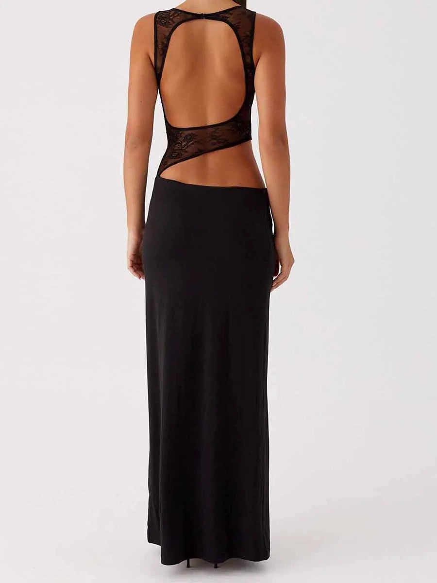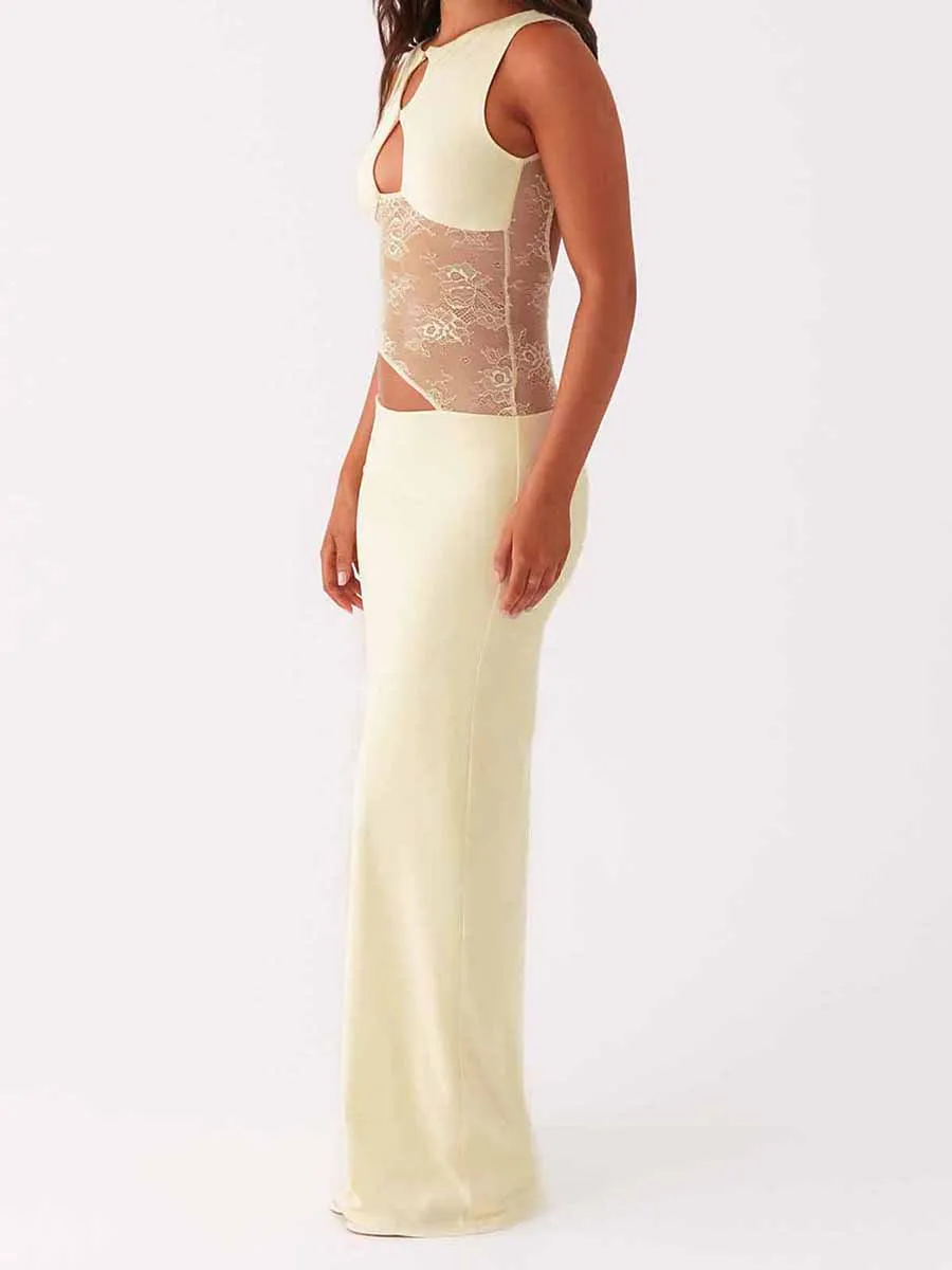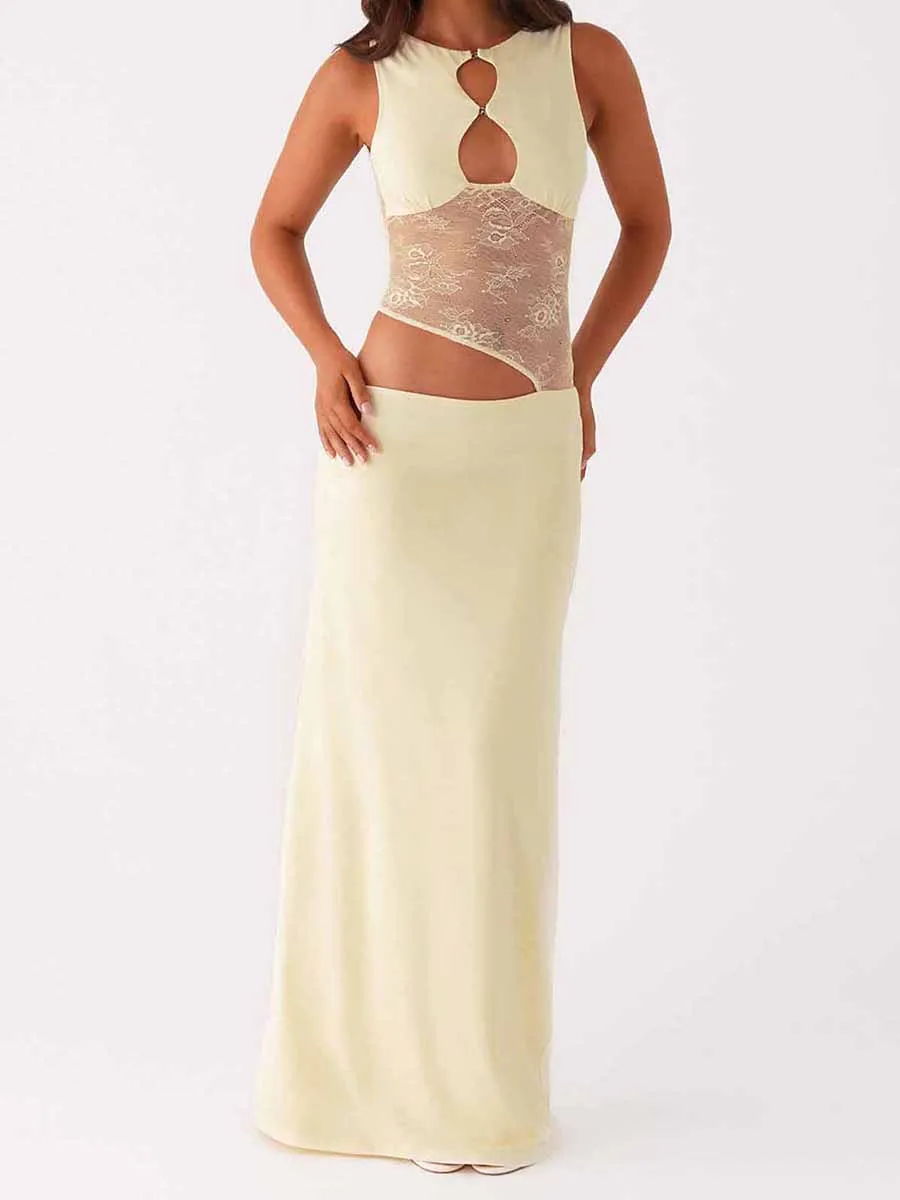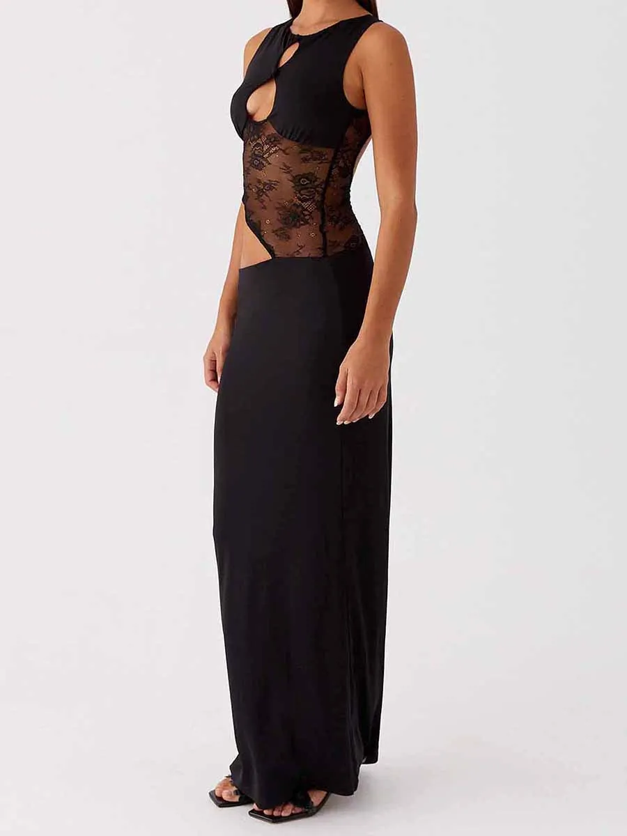 Women Long Dress Lace Patchwork Hollow-Out Sleeveless Dress Summer Casual Fashion Bodycon DressSize (cm)