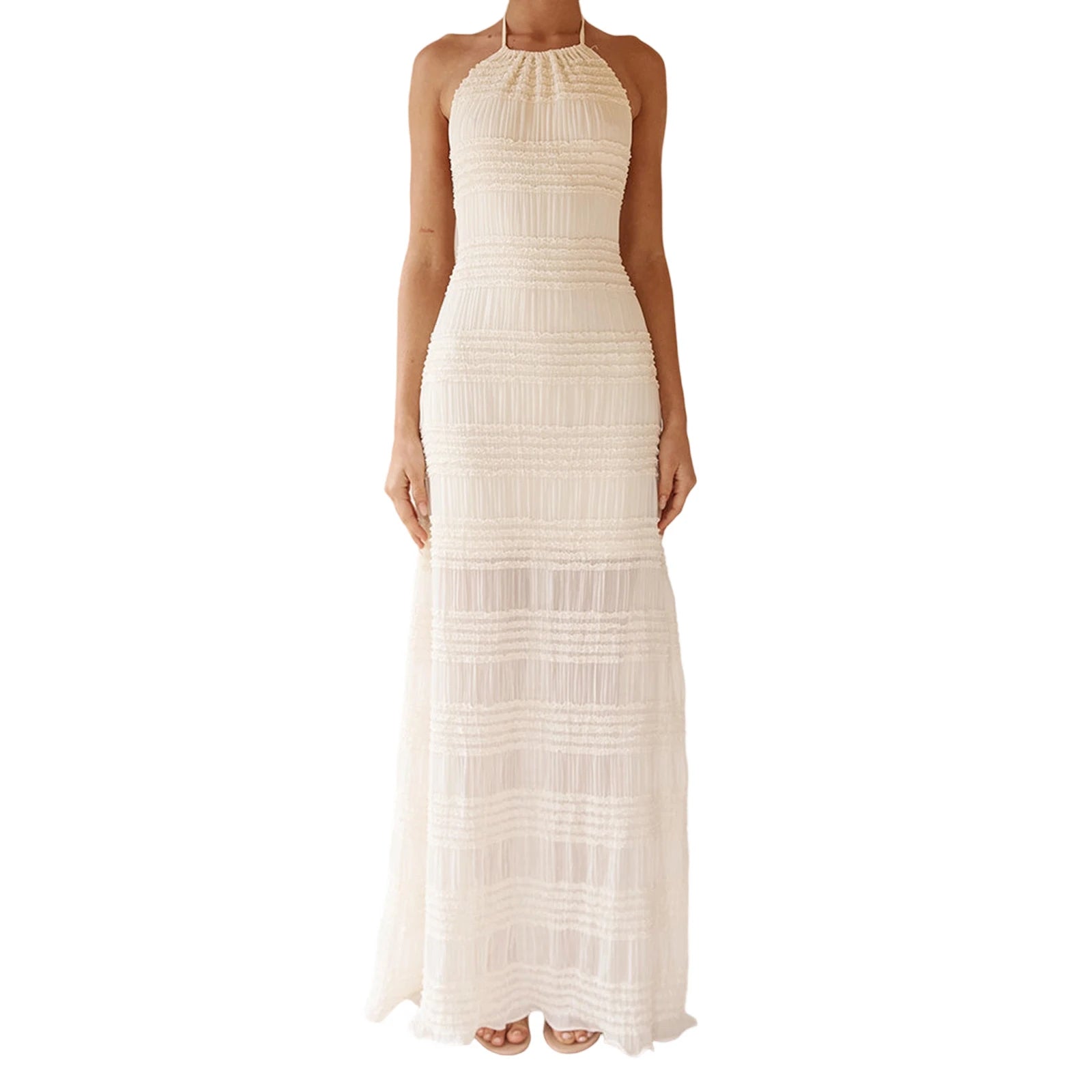 Elegant Maxi Dress with Lace-Up Halter Neck and Open Back Detail Stylish Sleeveless Summer Dress for Women Solid Color Casual