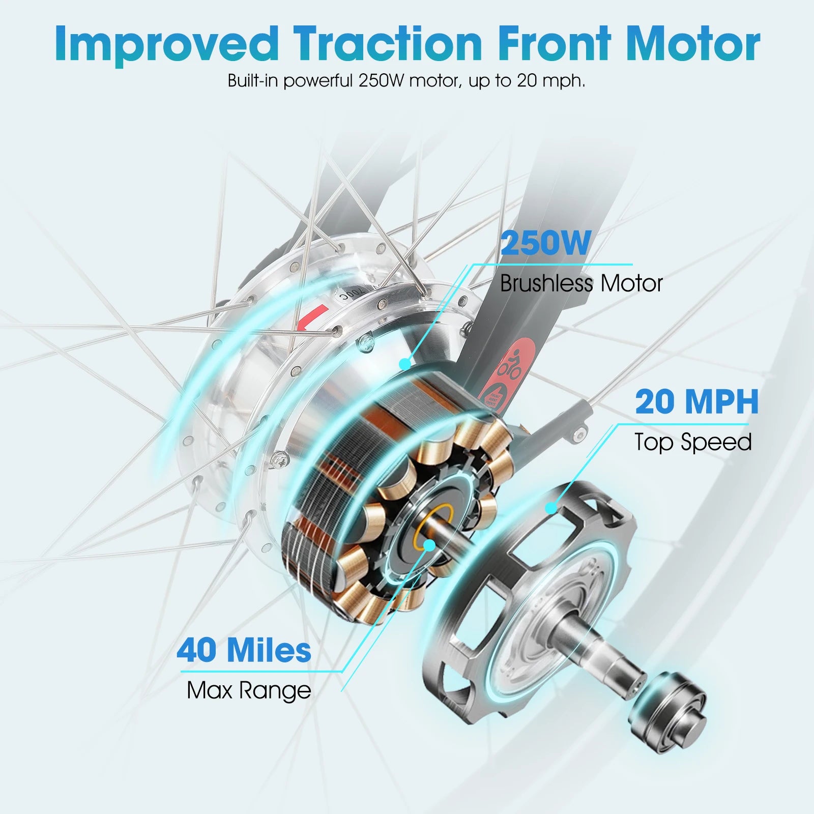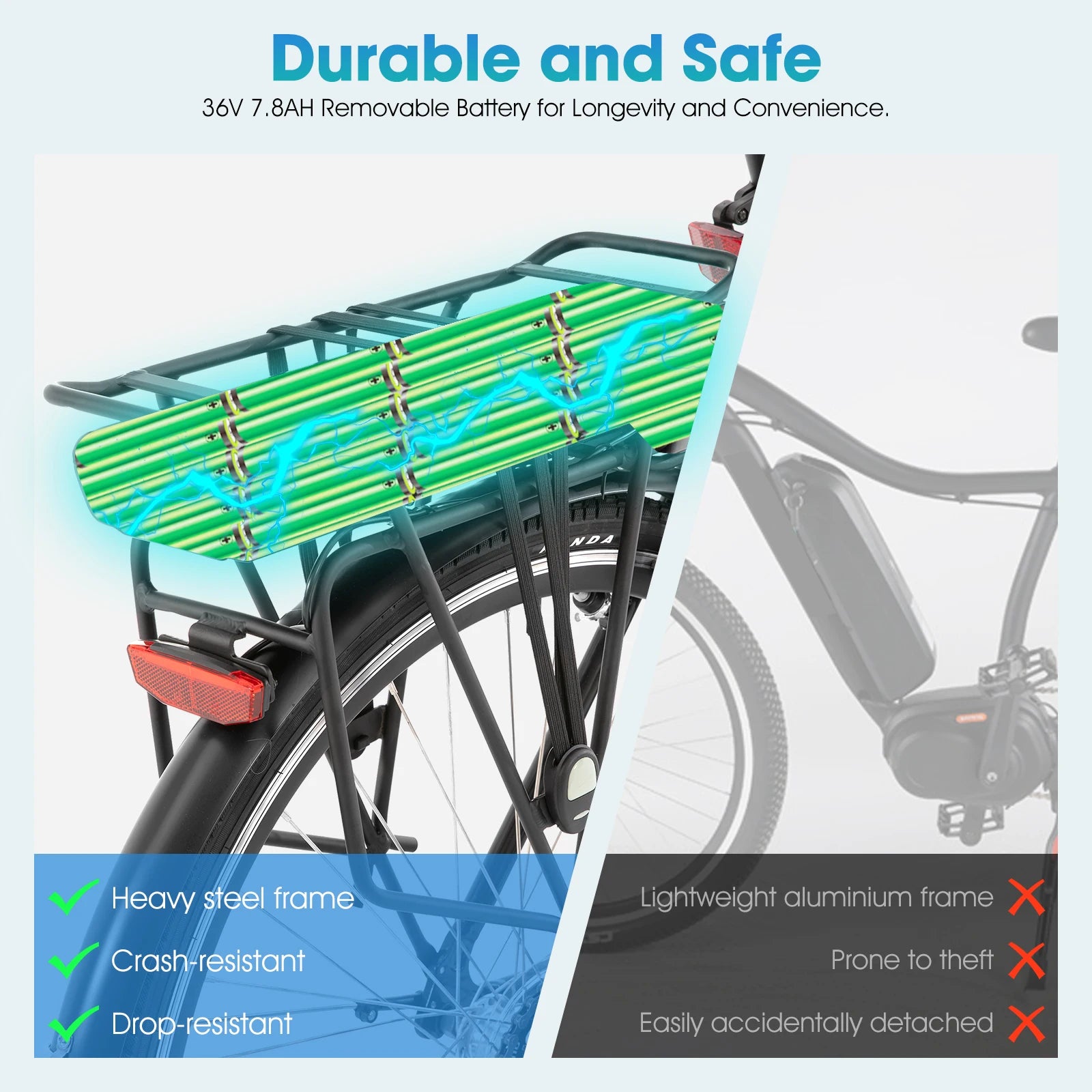 HILAND Adult electric road bike, detachable lithium battery, commuting electric bike,36V,7.8AH, 250W Motor,LCD Display, 20 MPH