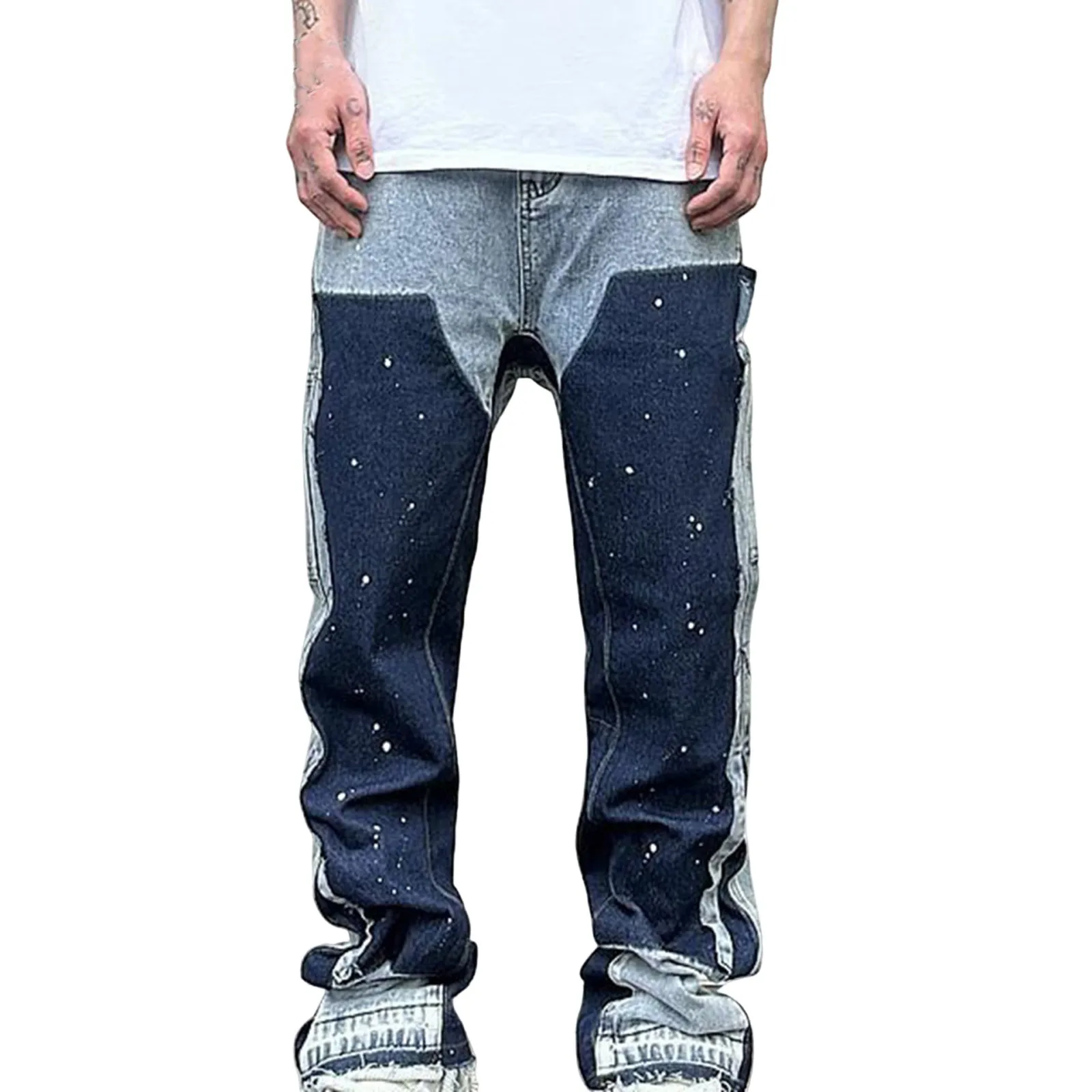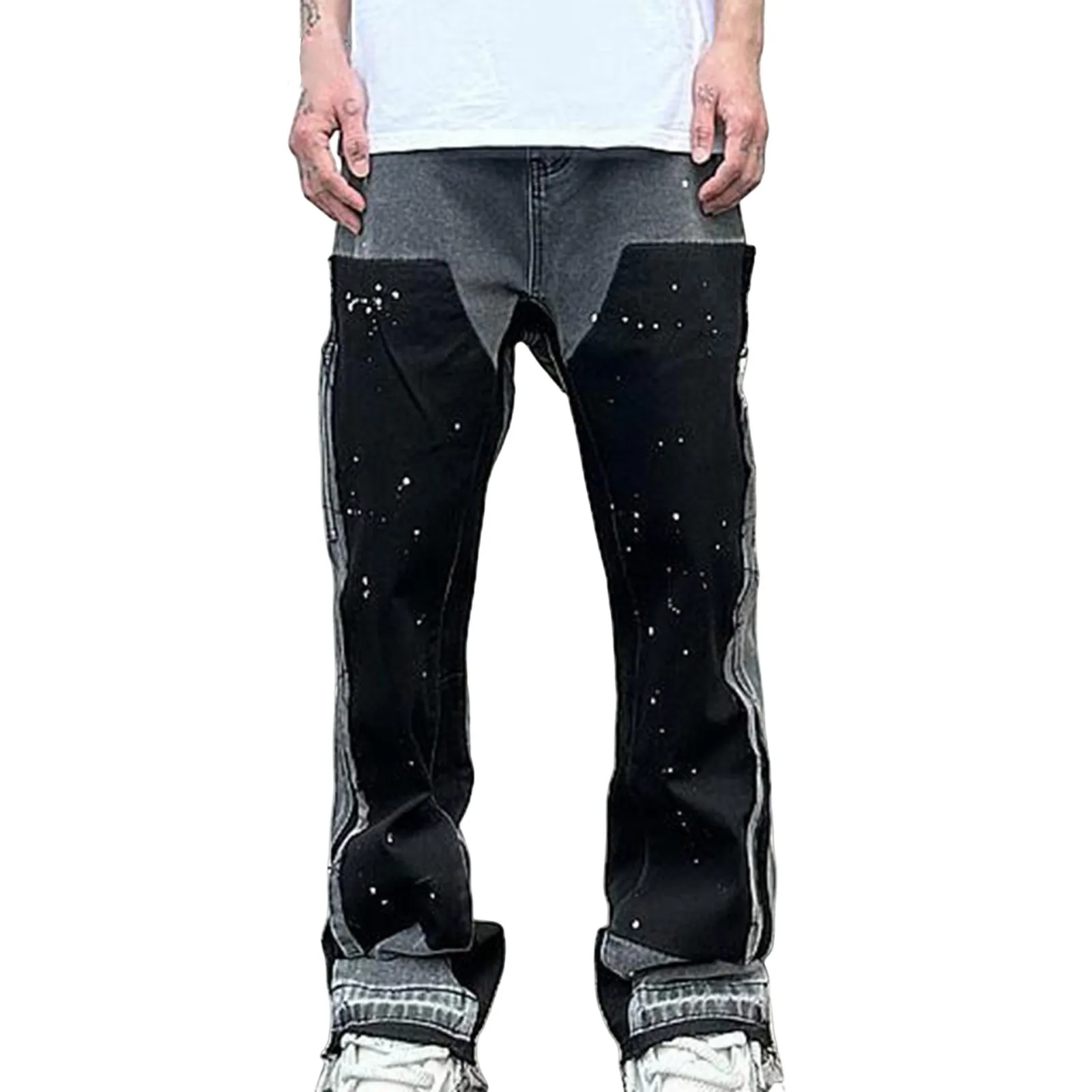 Korean Popular Clothes Y2k Old Wash Baggy Jeans Man‘S 2000s Casual Gothic Wide Pants Splicing Ink Street Micro Flare Denim Jeans