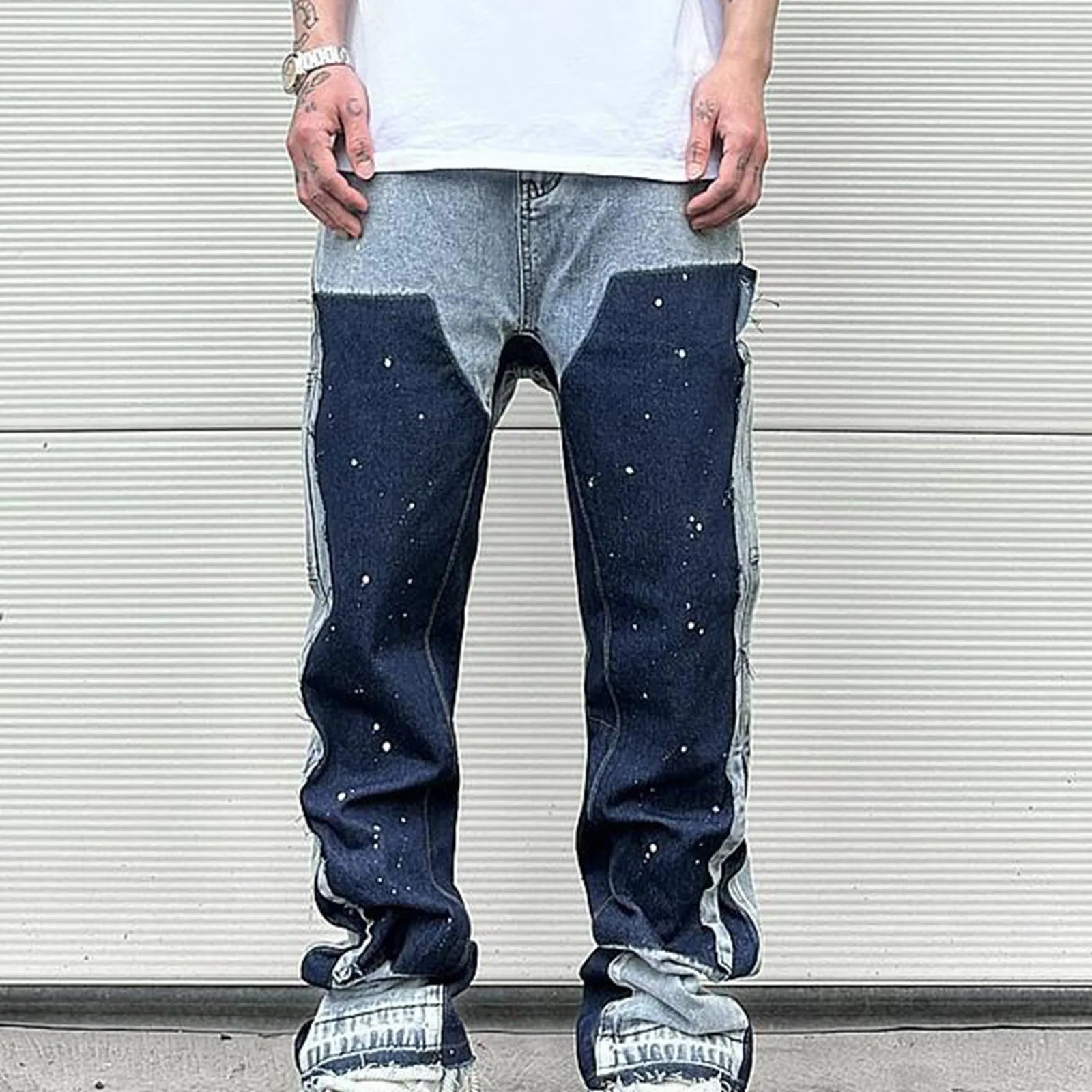 Men and women with the same high street splicing ink street advanced sense of micro flare jeans