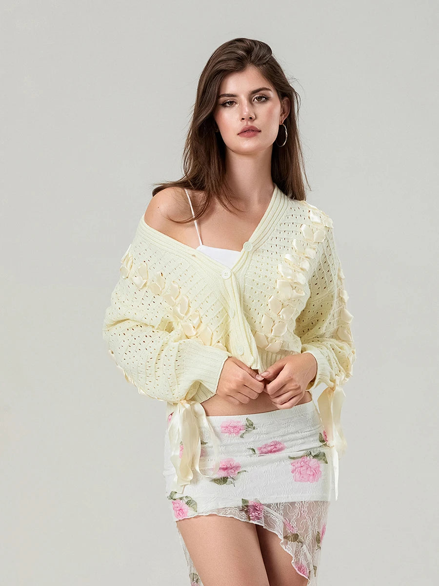 Women Knit Cardigan Long Sleeve Tie-up Button Closure Fall Casual Jacket SweaterA perfect addition to your cool-weather wardrobe, easy to go and fit with other clothes.