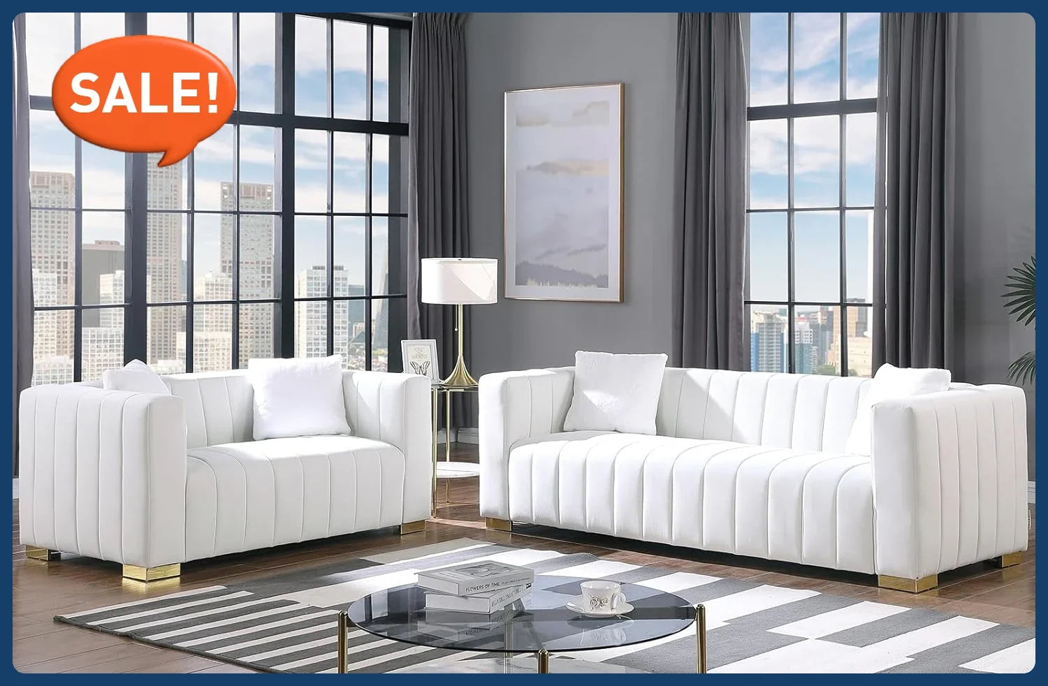 - Luxury Look - Clean lines and elegant channel tufted design, square armrest, and wide gold metal legs give this sofa and loveseat set a luxurious and stately appeal. It is designed to impress your modern living room as an elegant stunner.
