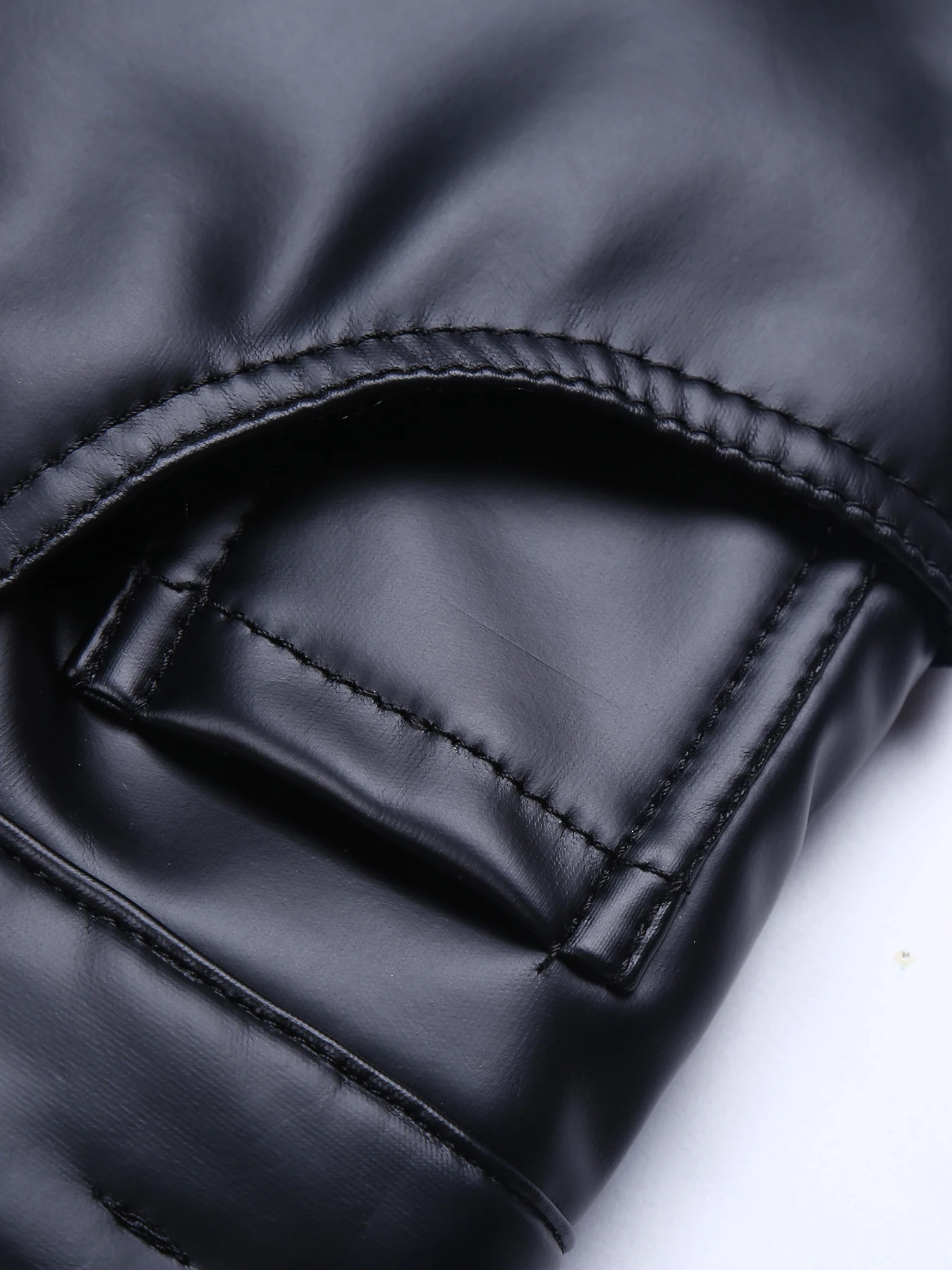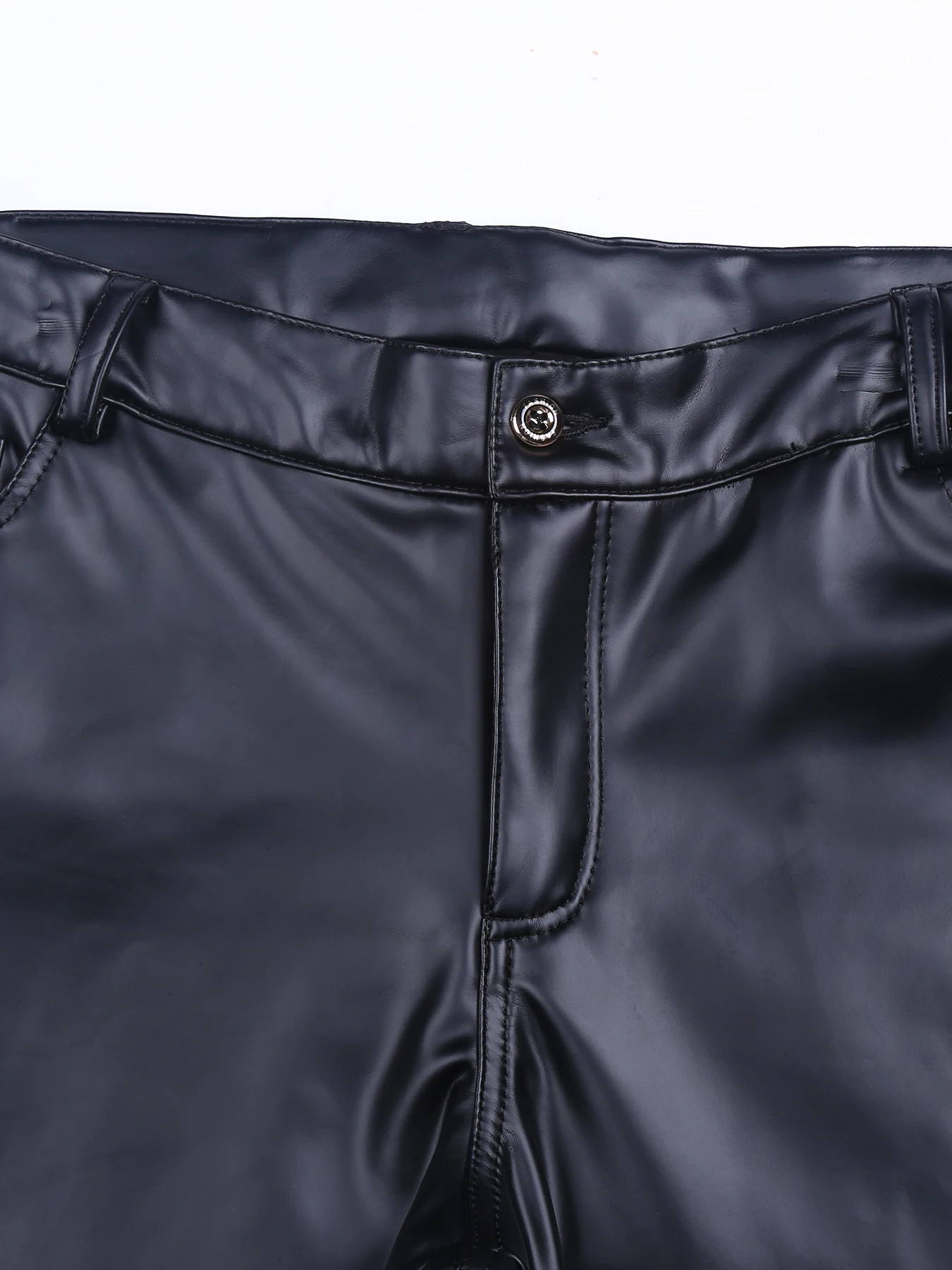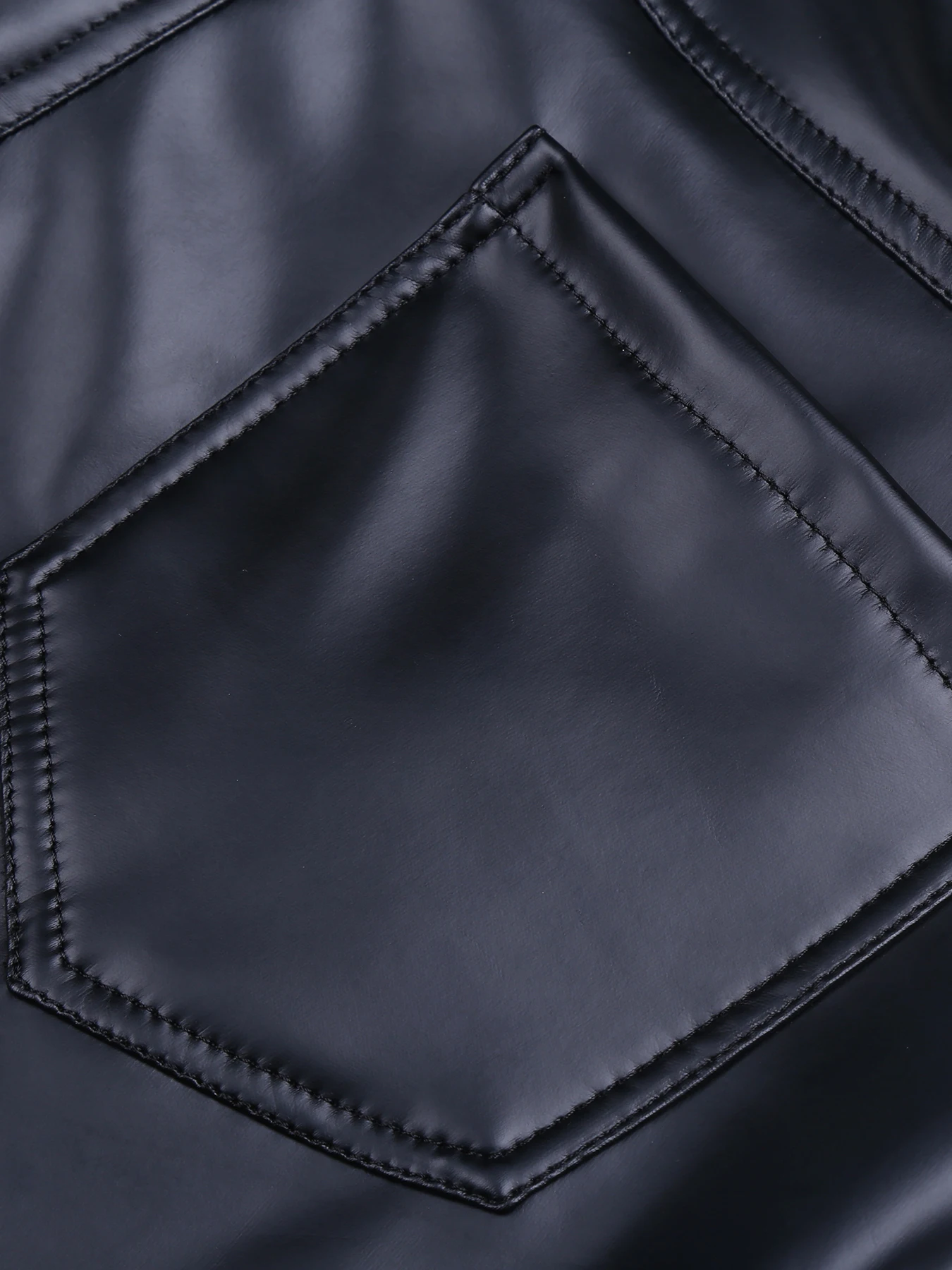 Men`s Party Stage Performance Business Slim Fit Five Pockets Faux Leather Pants Jeans
