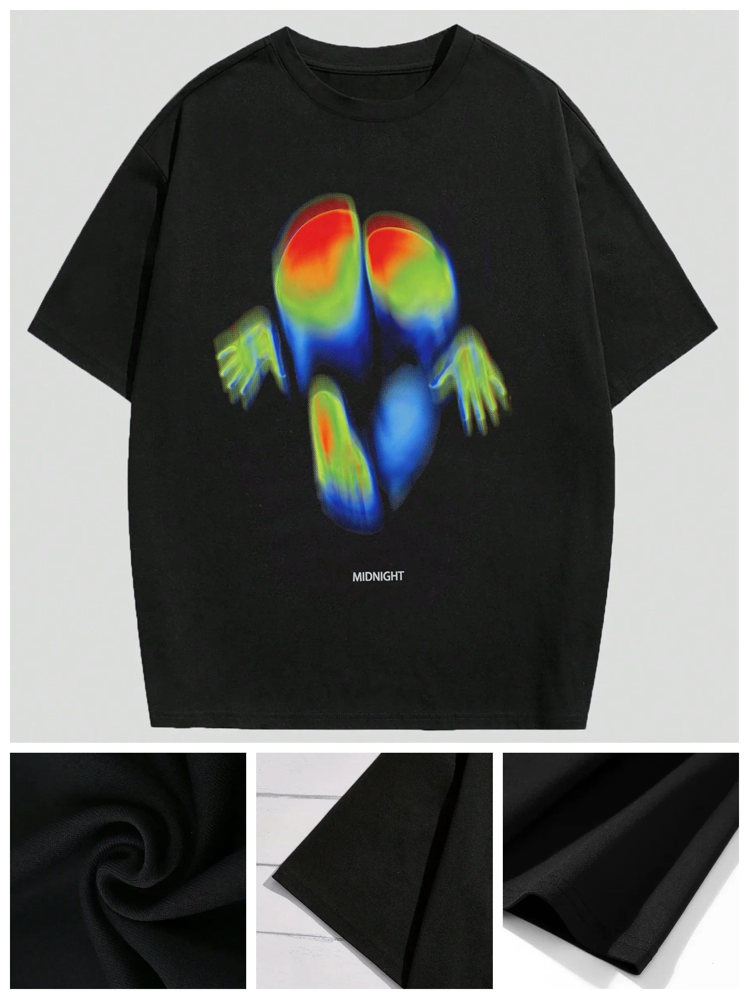 Men's 100% Cotton Casual Abstract Print Crew Neck T-Shirt with Applique - Summer Tee for Men’s Clothing