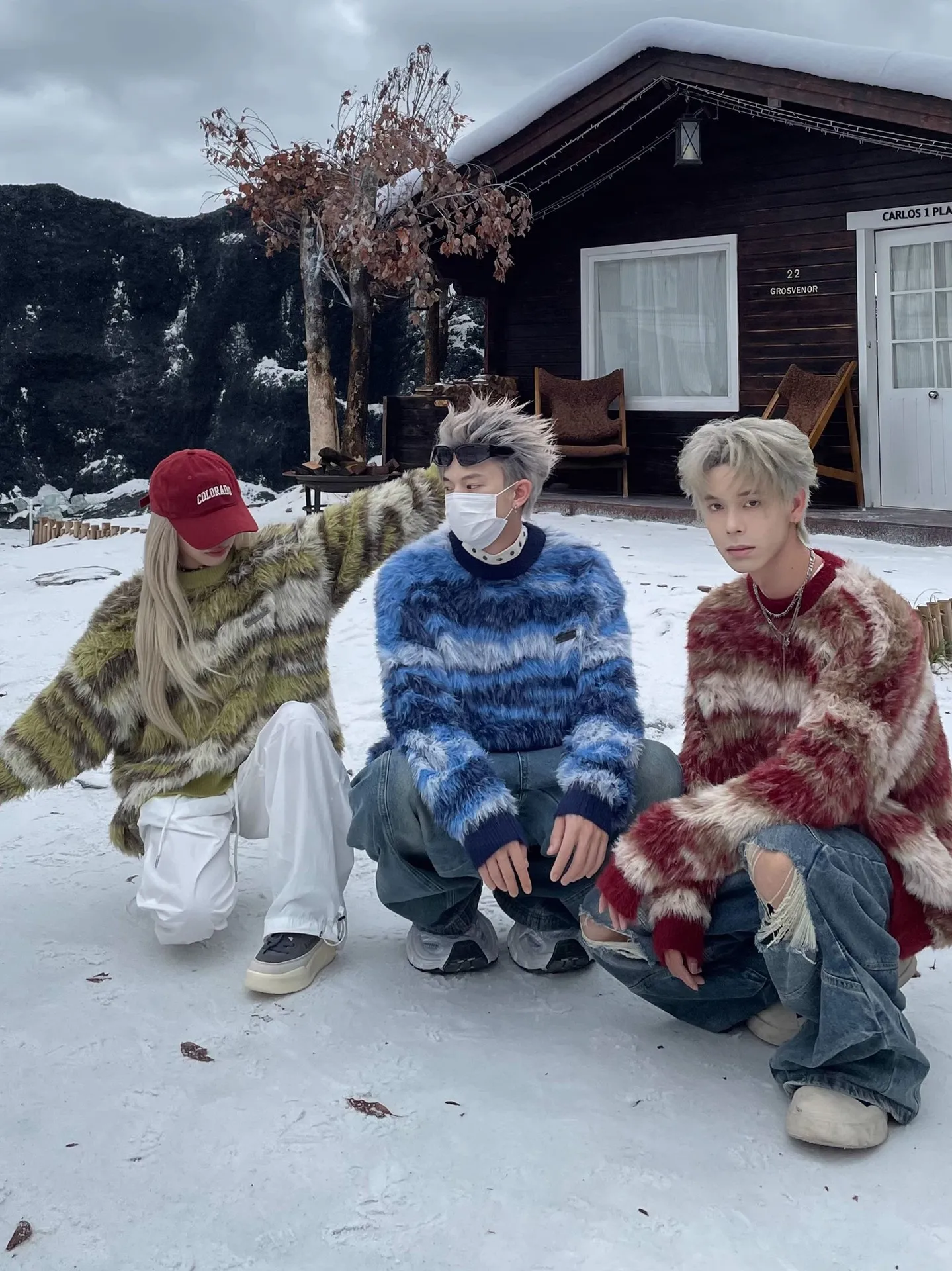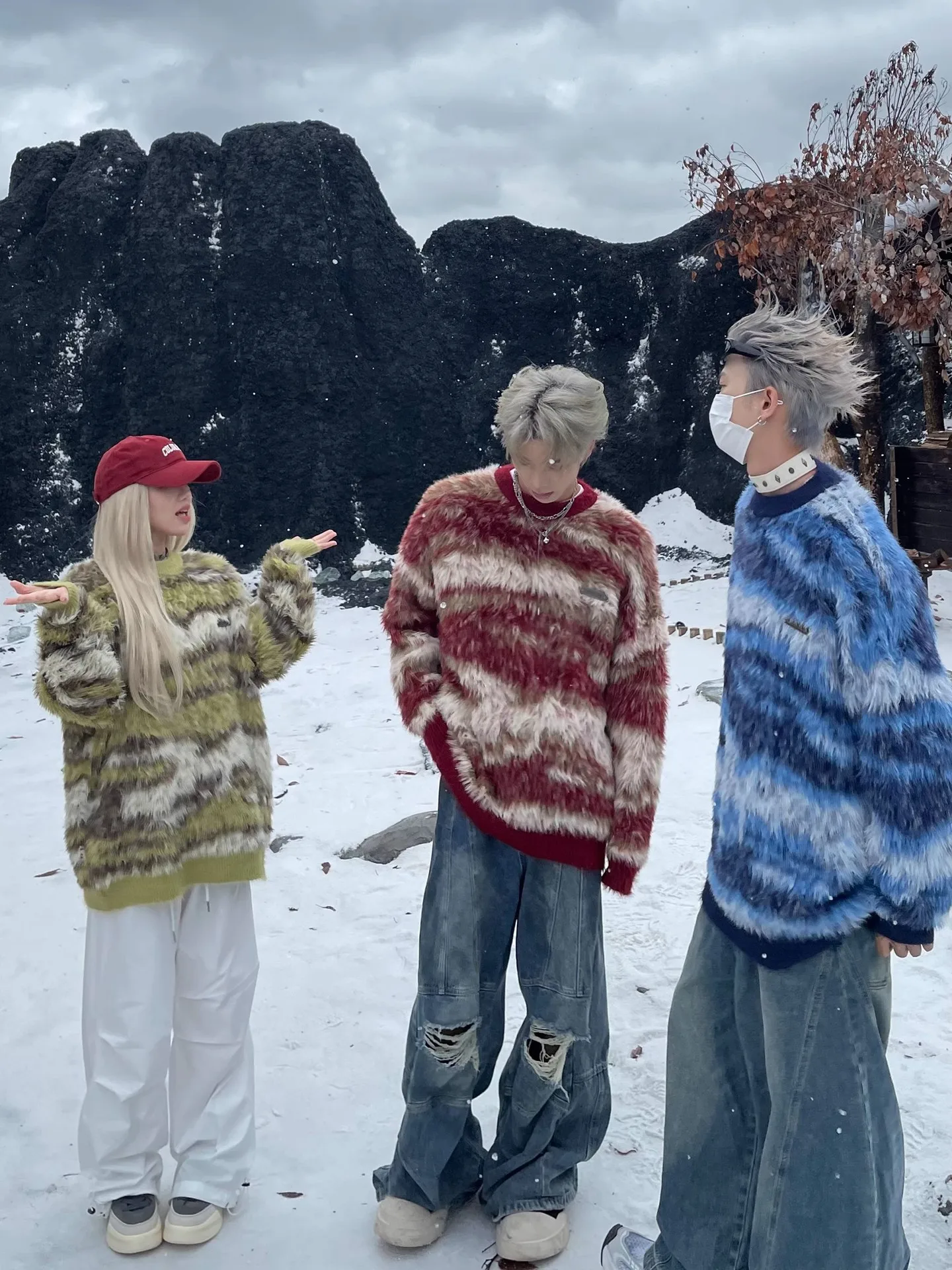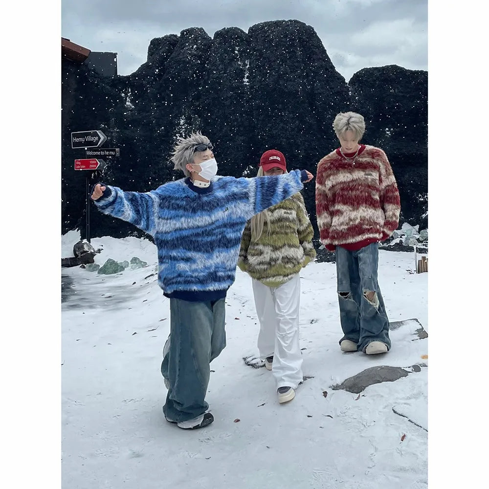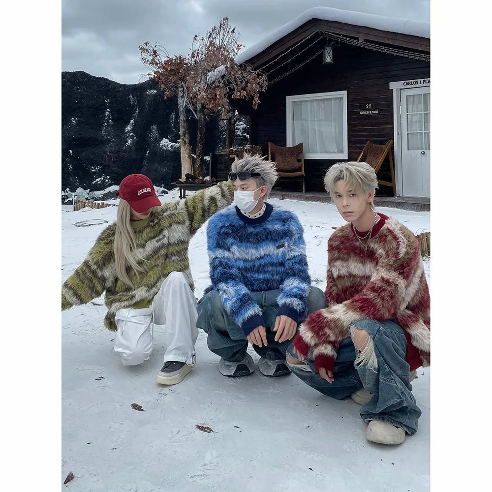 New Striped American Style Street Knitted Sweaters Top For Men Women Trendy Casual Couple Knitwear Sweater Clothing Men