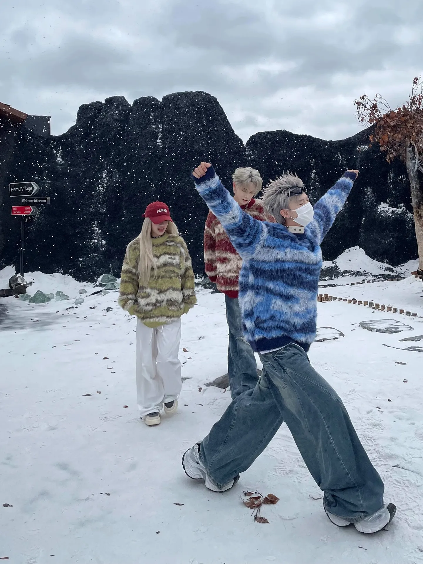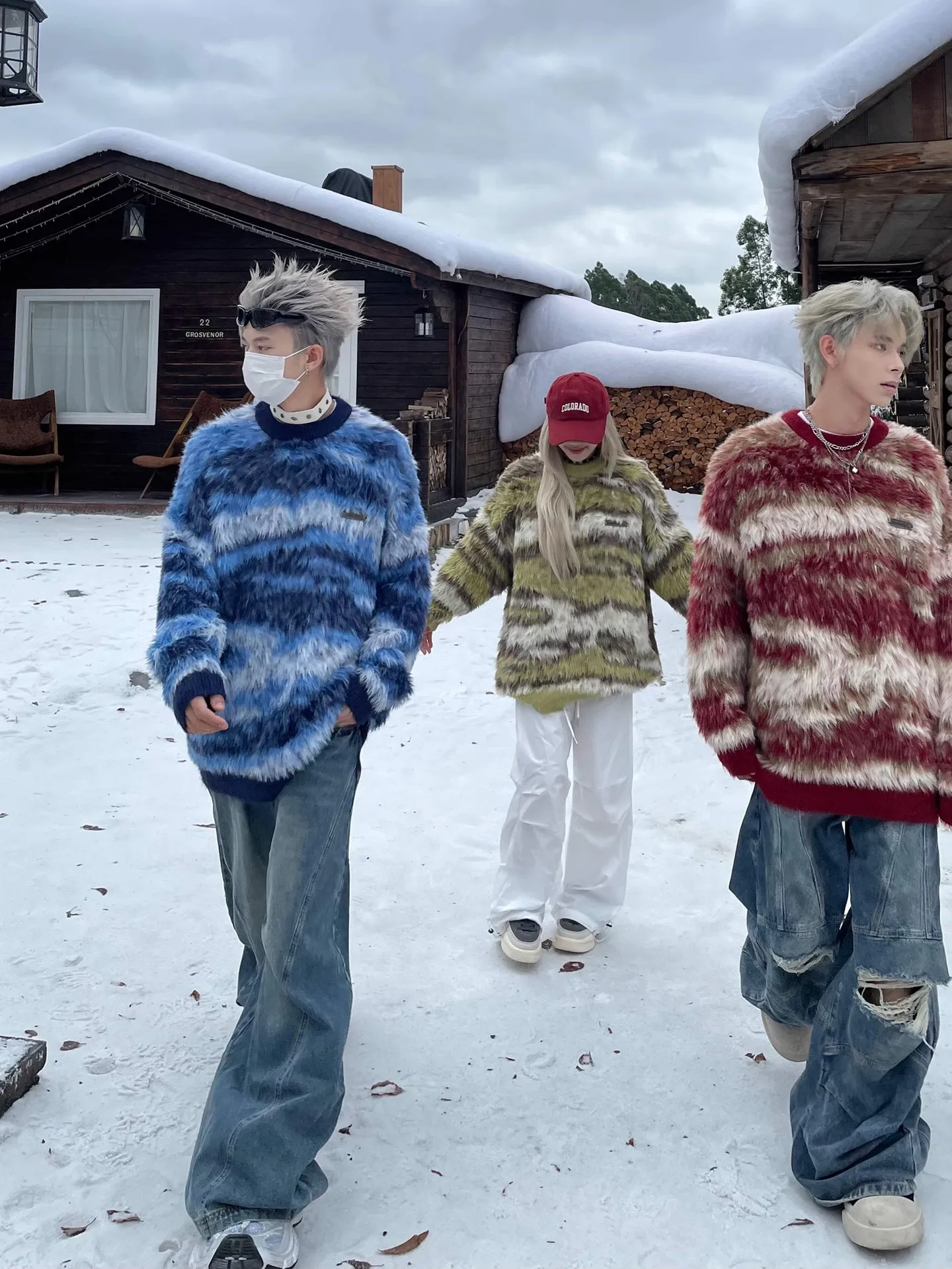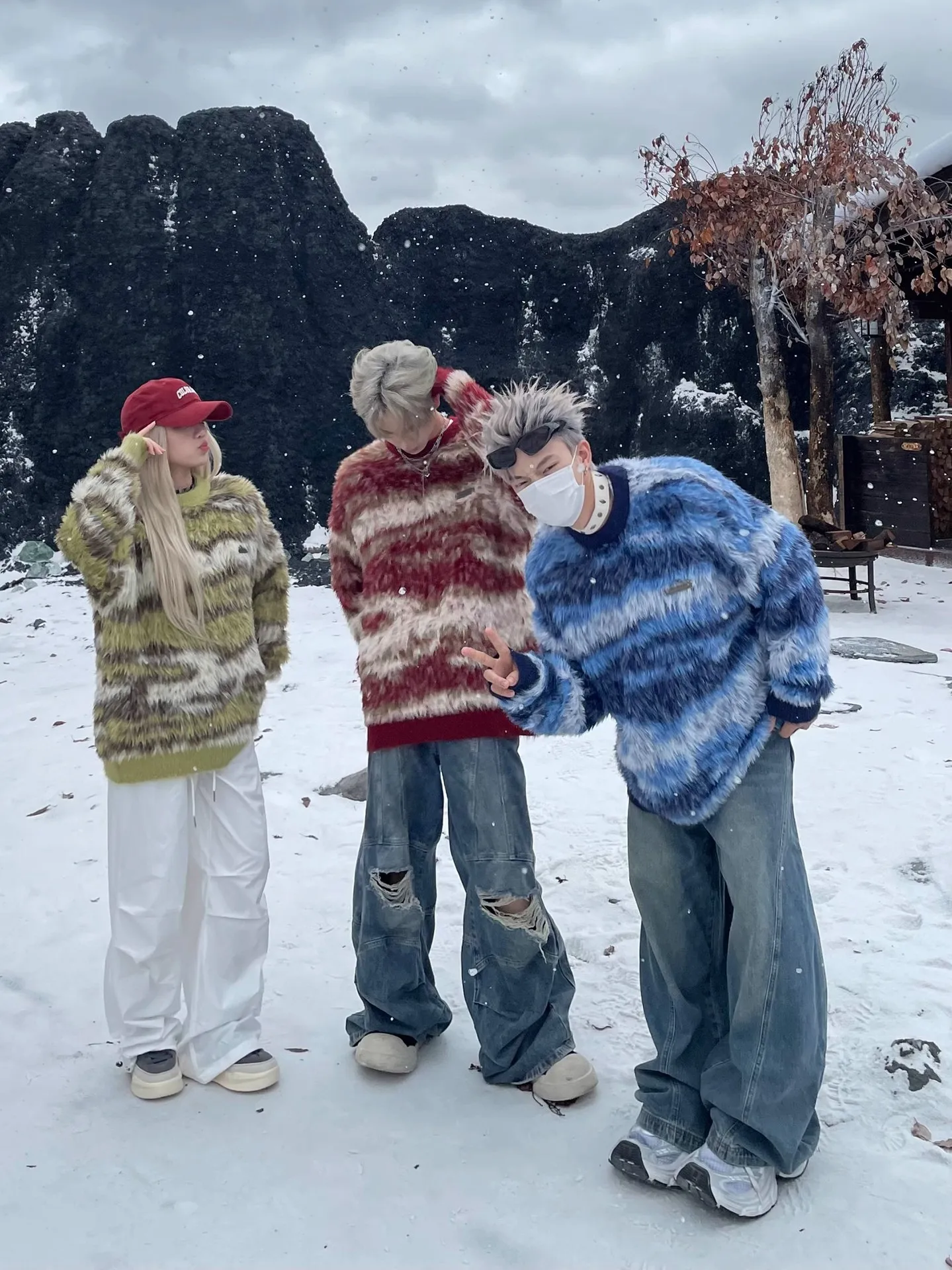 New Striped American Style Street Knitted Sweaters Top For Men Women Trendy Casual Couple Knitwear Sweater Clothing Men