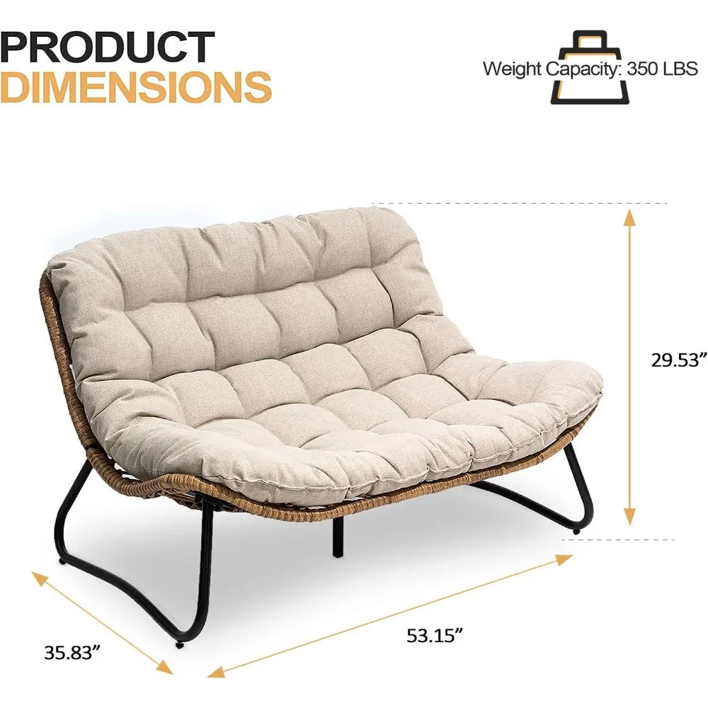 - MAXIMUM COMFORT SEATING EXPERIENCE: Ergonomically designed patio loveseat, contouring to the body's seated posture with a 4-inch thick cushion, supporting a maximum weight of 350 pounds.