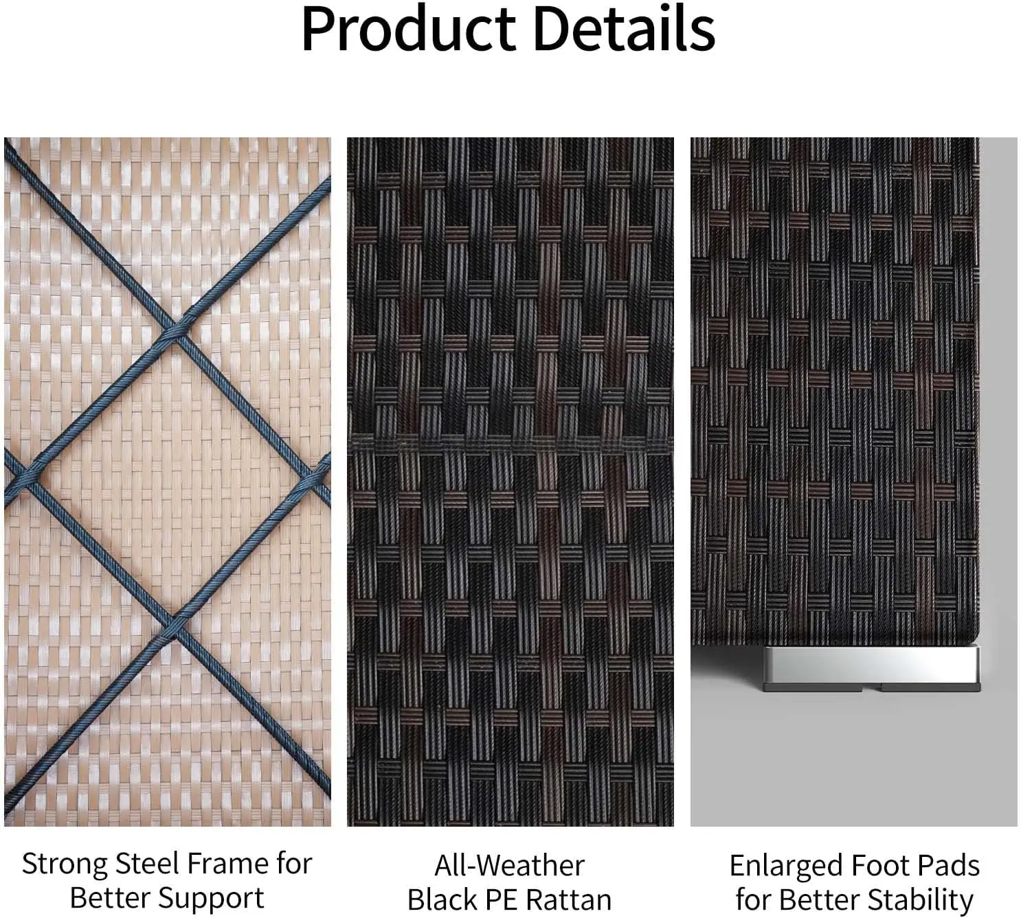 - Sturdy and Durable Frame: This patio furniture is constructed from the strong powder-coated durable steel frame. Seating clips prevent seats from moving if you need them to be together