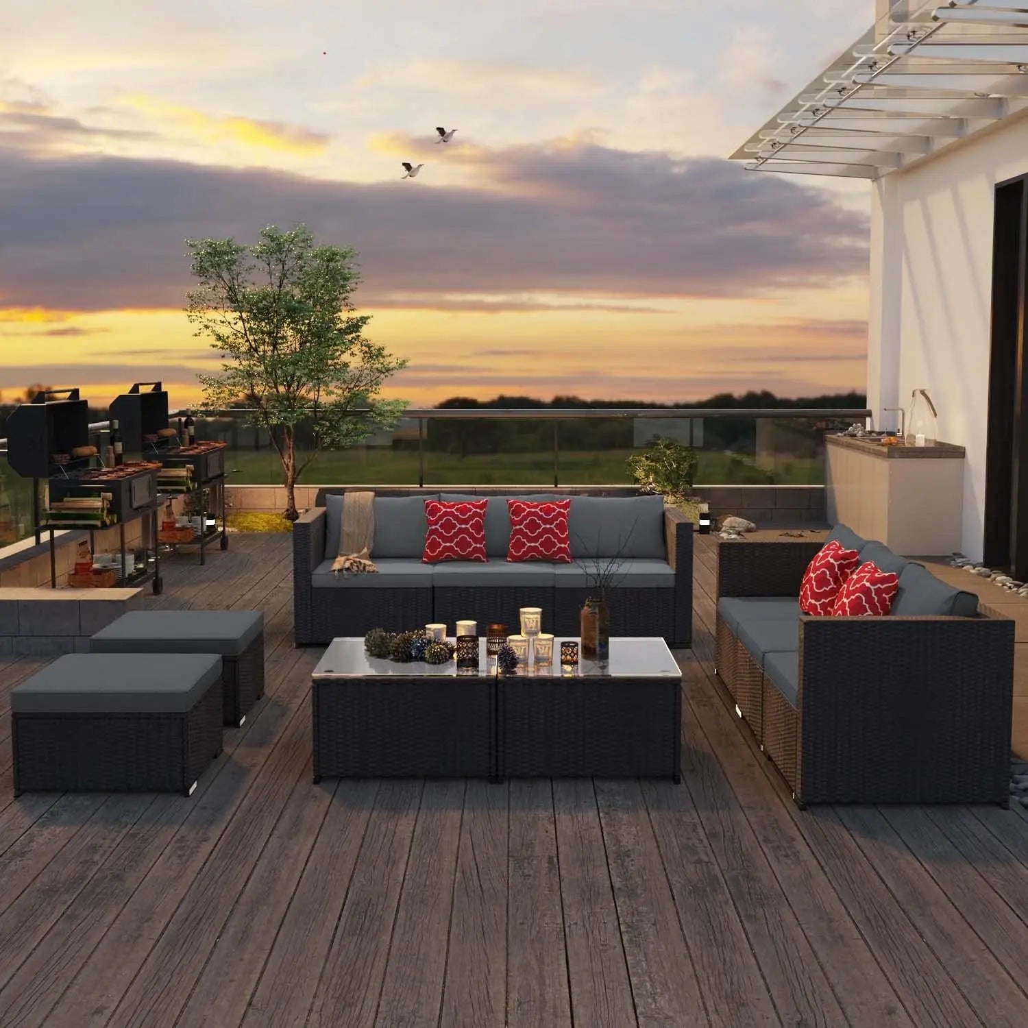 - Modern and Comfortable: The patio furniture with cushions and pillows provide much comfort when sitting. The covers of the cushions and pillows are movable and washable