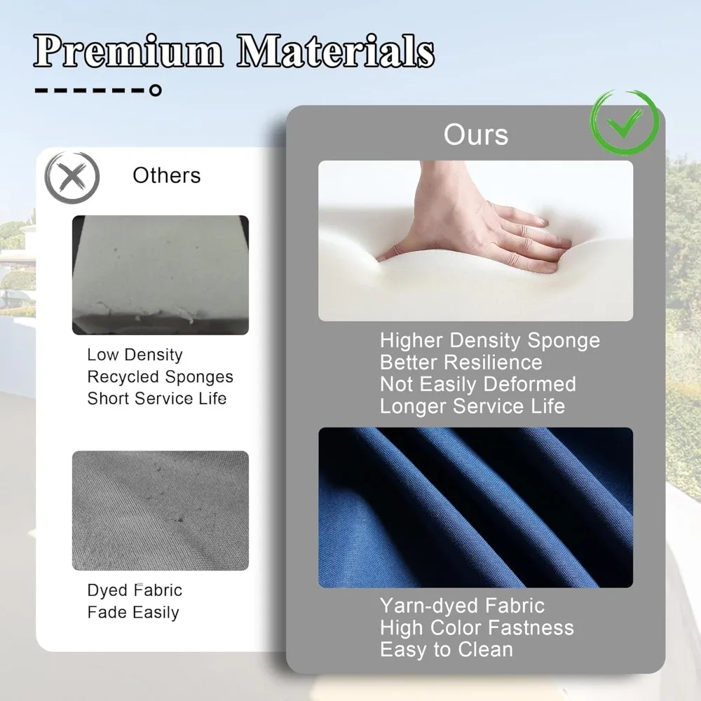 - Ergonomic Design: The ergonomic high backrest and high armrest design of the outdoor furniture set can provide full support for your back, neck and hands, with wide and deep seating space, it can bring you a comfortable feeling