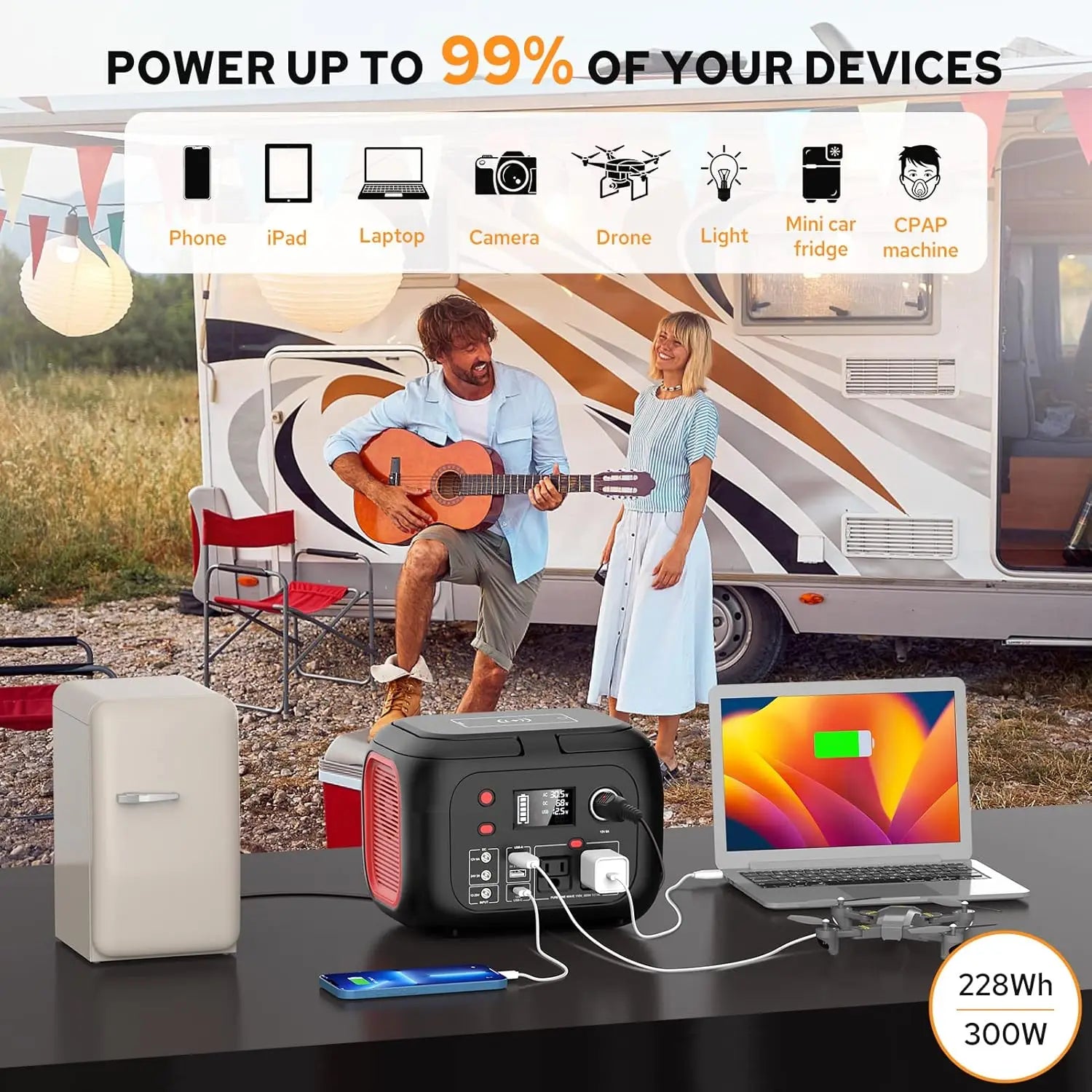 Portable Power Station 300W Power Bank with AC Outlet 228Wh Solar Generator with LED Light Portable Generators 9 Outputs Battery Backup Power Supply for Outdoor Camping Travel Emergency