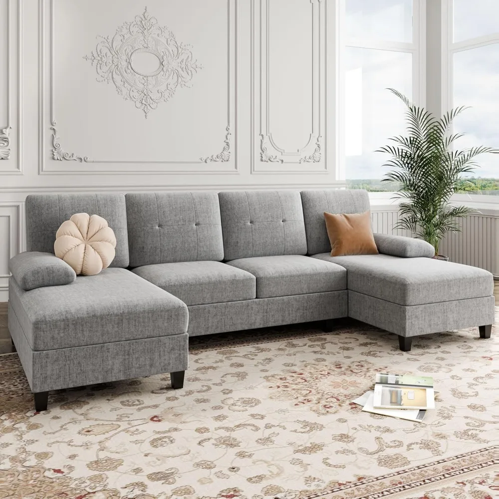 Sectional Sofas for The Living Room, U-Shaped Couch with Dual Chaise Lounge, 4-Seat Furniture Set Featuring Soft Cushions and L