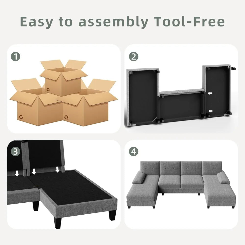 - 【Hassle-Free Assembly】: This U-shaped sofa is designed for easy assembly with no need for extra tools. All the necessary components are included in the box, and by following the simple instructions, you'll be able to complete the setup in 30 minutes and start enjoying the comfort of your sofa.