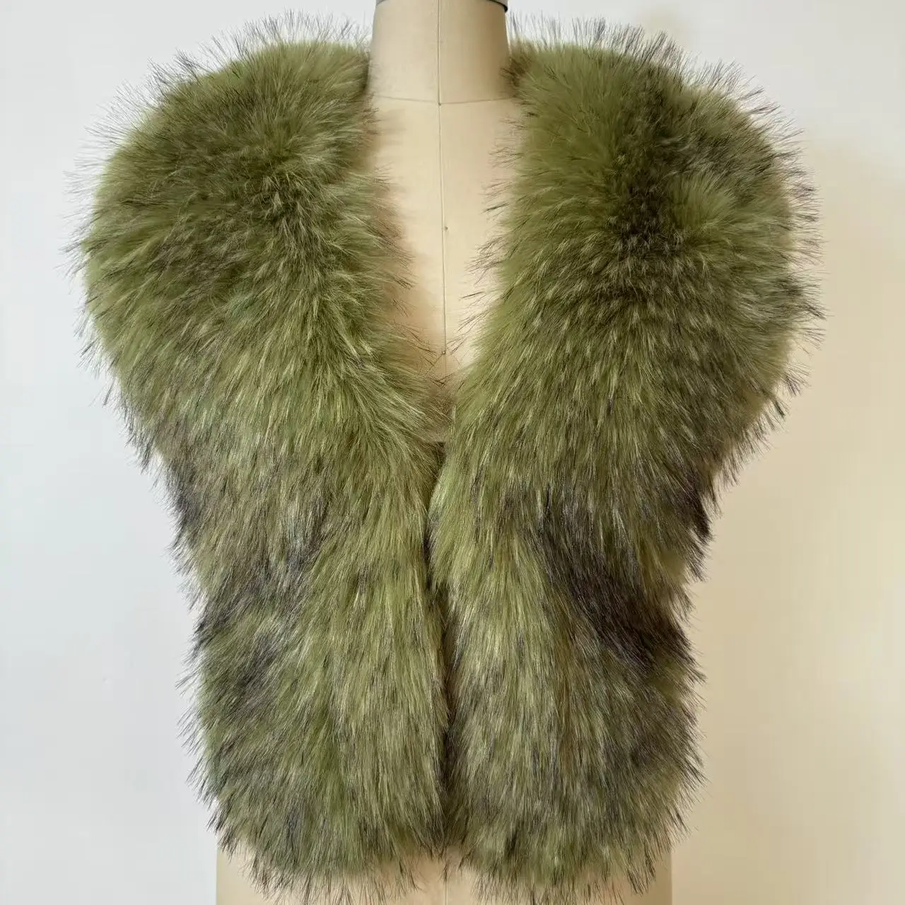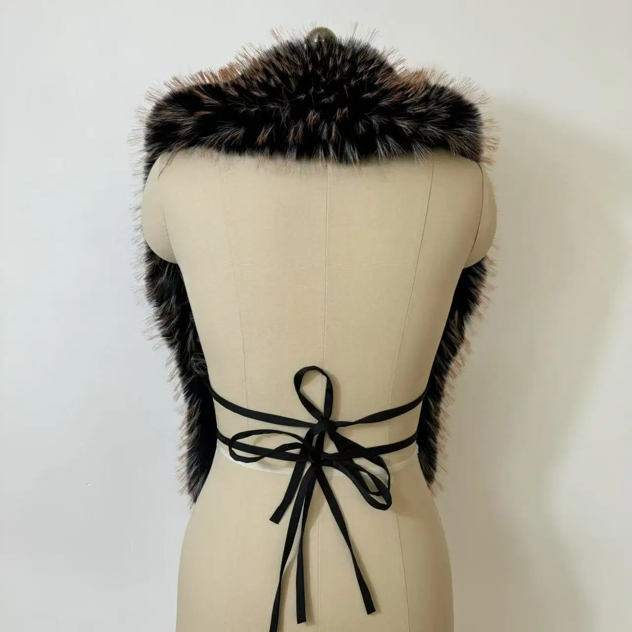 Streetwear New Faux Raccoon Fur Vest Women Fuax Fur Halter Top vest