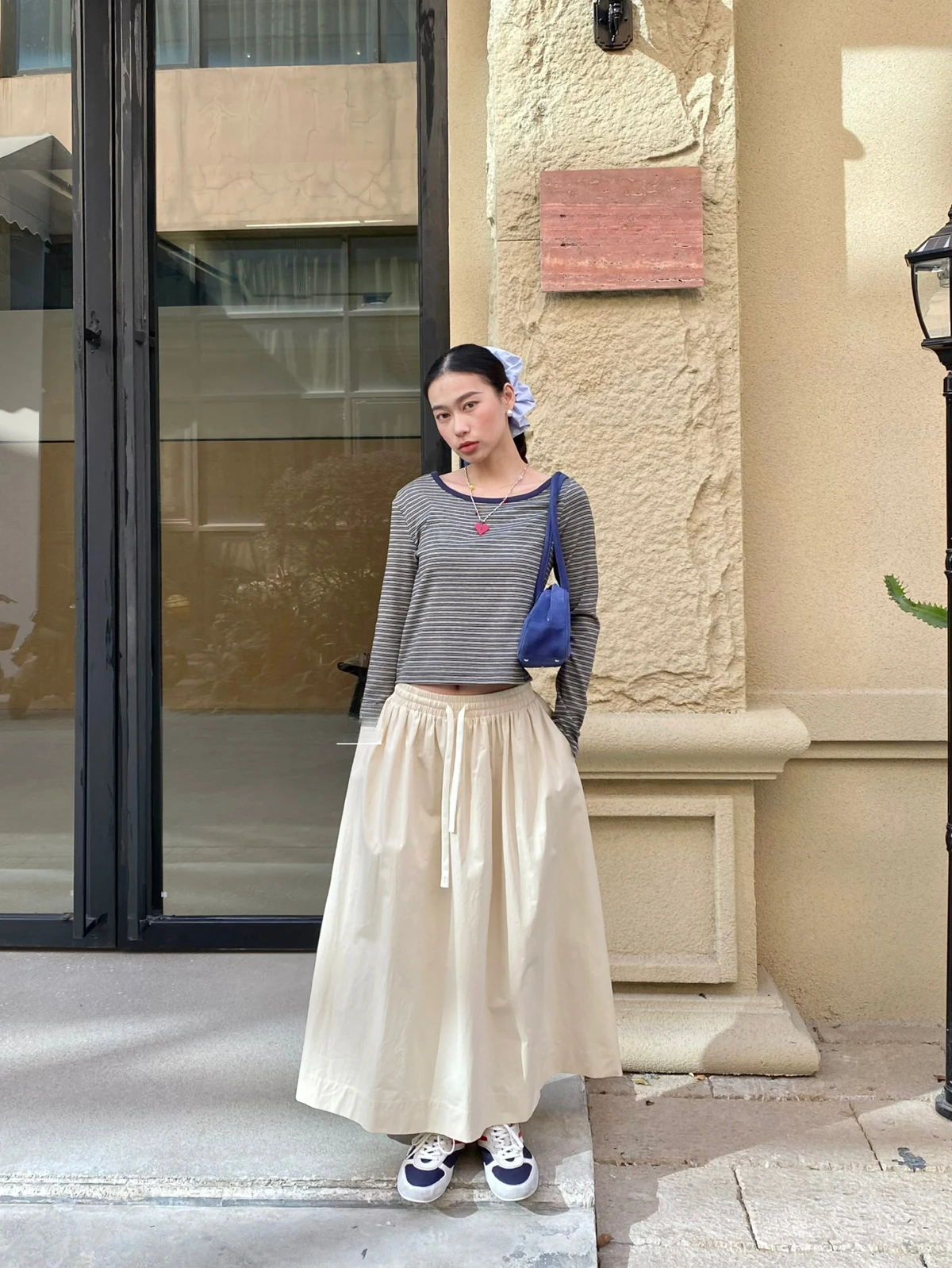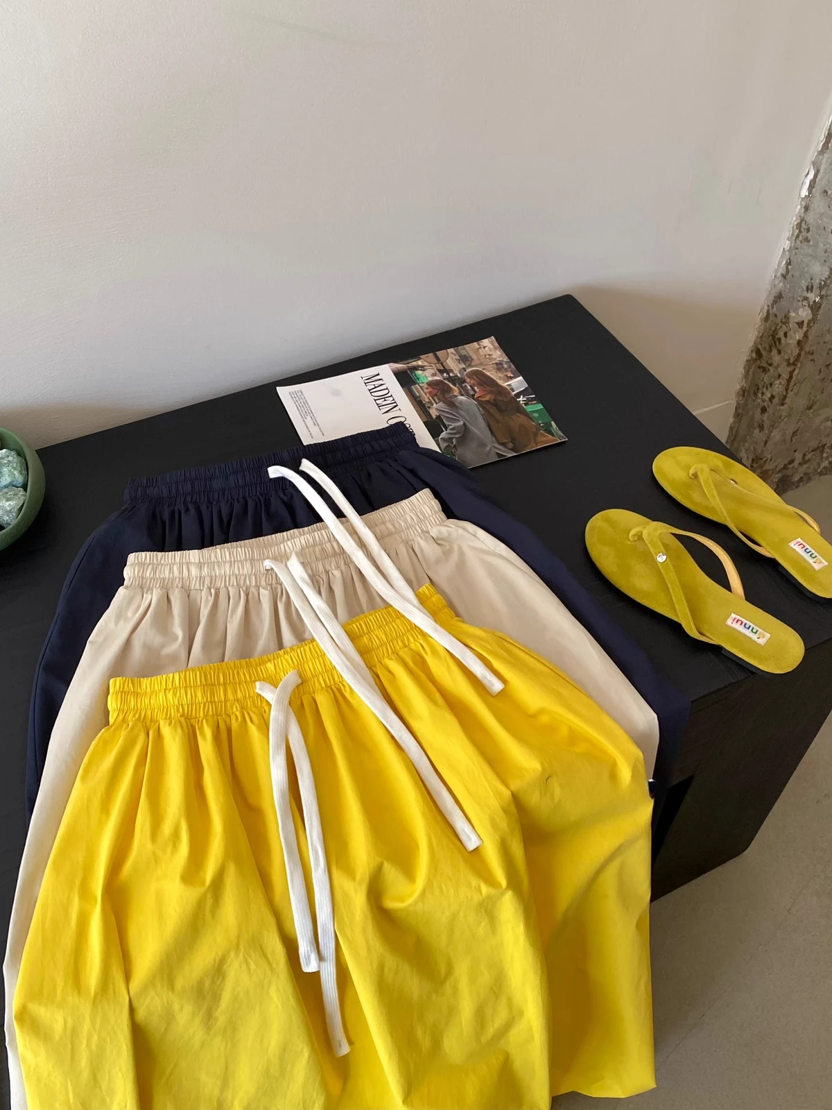 Women Elastic Waist Skirts with Drawstring High Waist Casual Yellow Midi Skirt 2025 New In