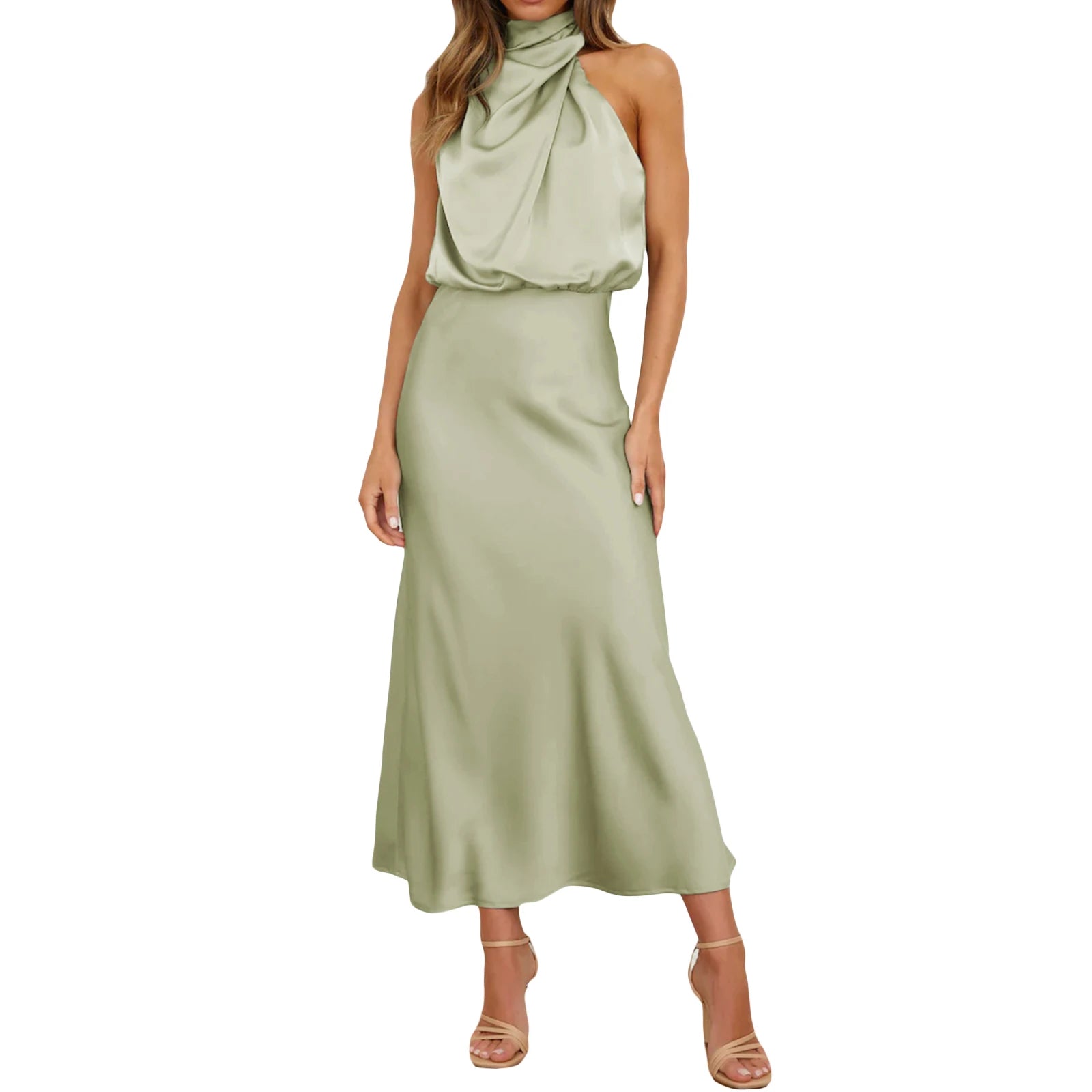 Women Long Satin Dress, Elegant Sleeveless Turtleneck Solid Summer Dress for Cocktail PartyOur sleeveless long dress can be matched with high heels, jewelry and handbags to make you more attractive, also is a perfect gift to your friends.