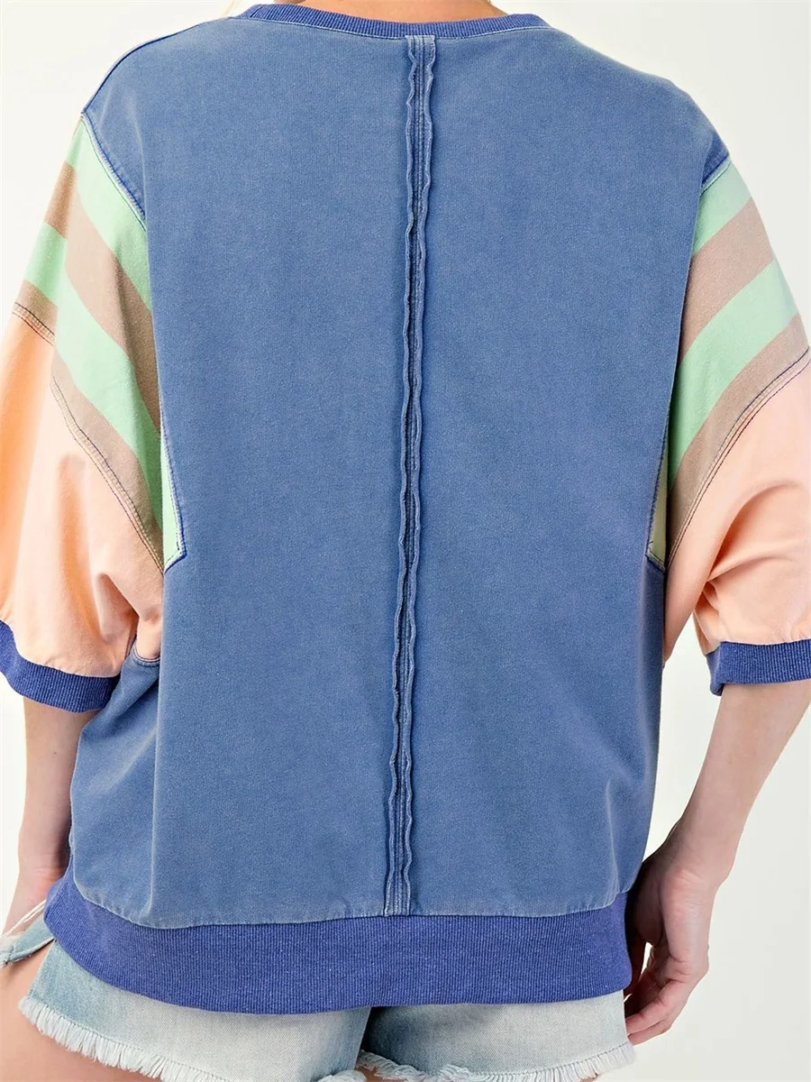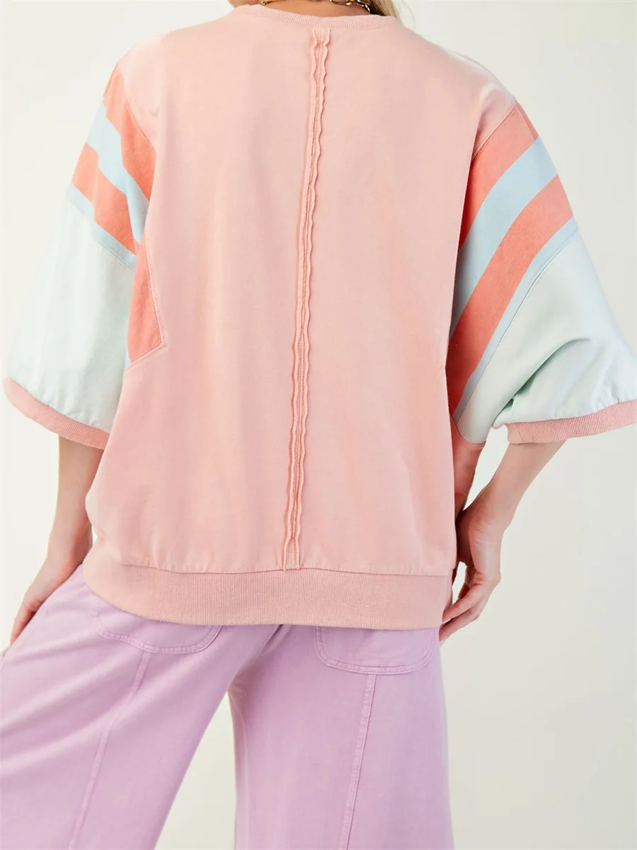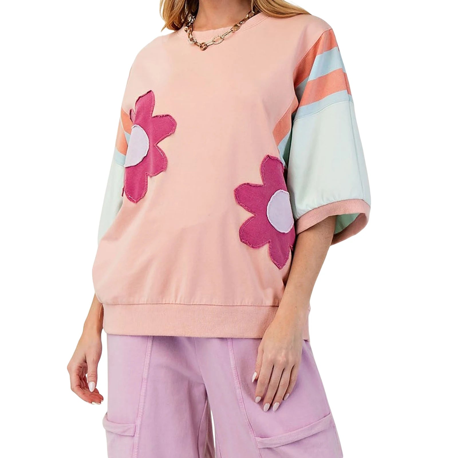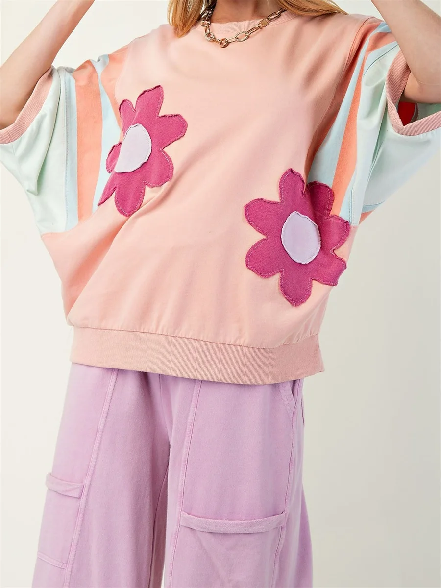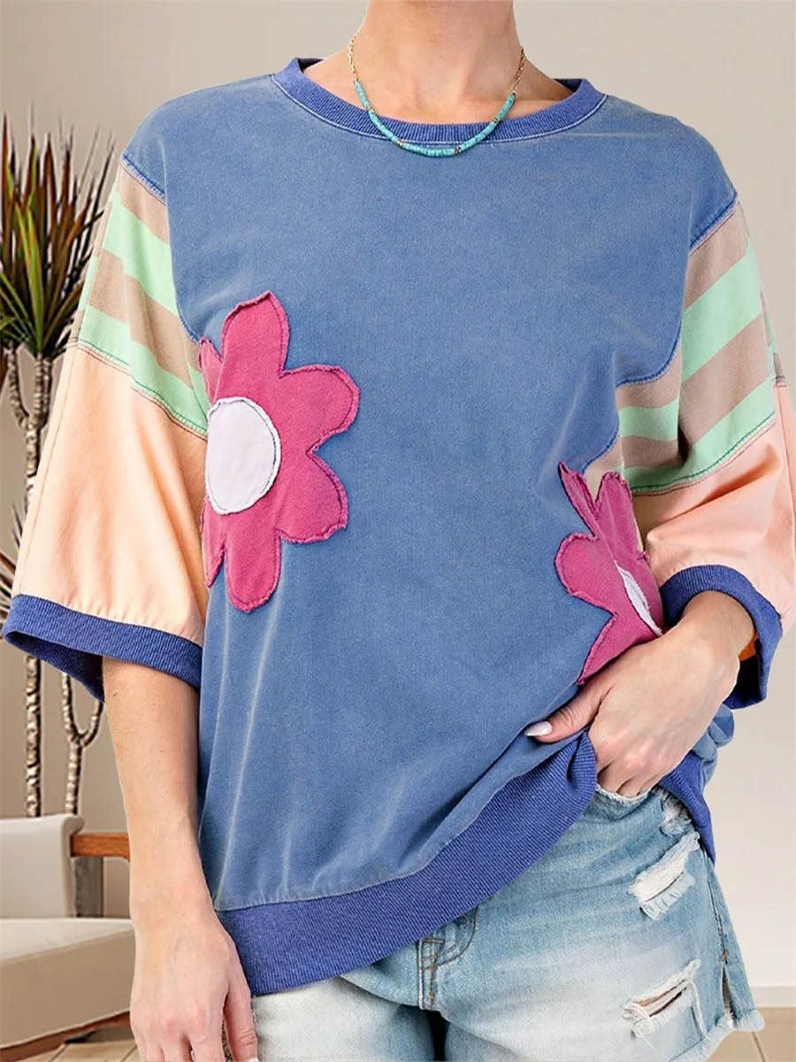Women T-shirt, Crew Neck Short Sleeve Flower Contrast Color Summer Loose Tops for Casual DailySuper comfy and stylish which is what your closet is missing and is very popular among party. Easy to wash and dry with no wrinkles.