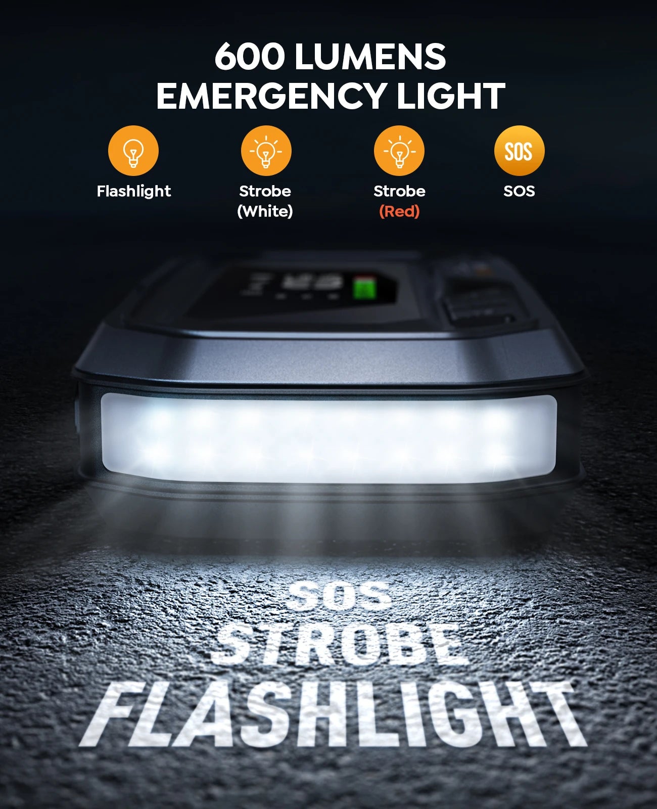 - Multi-Purpose Functionality: This 4-in-1 device not only jump starts your vehicle but also serves as a power bank with fast charging capability for your devices and a tire inflator for emergencies.